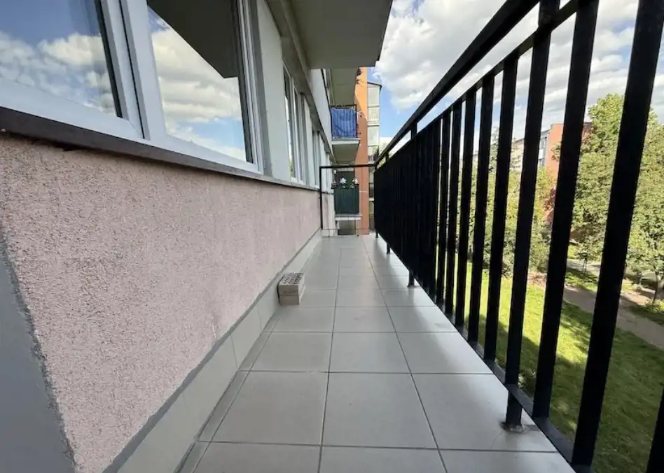 Mieszkanie ma długi, nasłoneczniony balkon a także piwnicę o powierzchni 2,86 m².