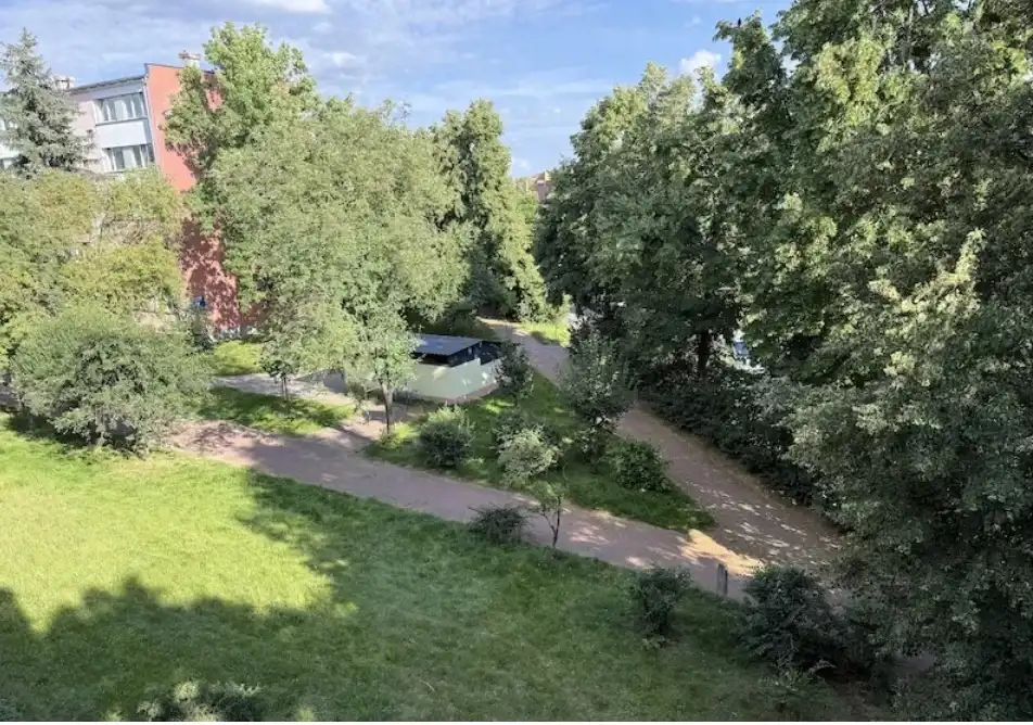 Zielona, spokojna okolica – idealna dla rodzin oraz osób ceniących ciszę i parkowe otoczenie bloku.