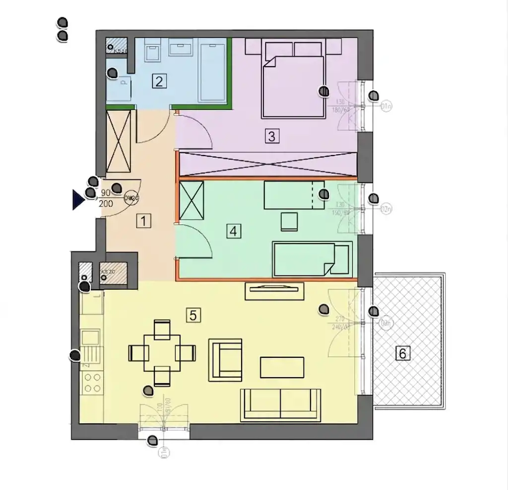 - Charakterystyka mieszkania 59.05 m2, 2 pokoje