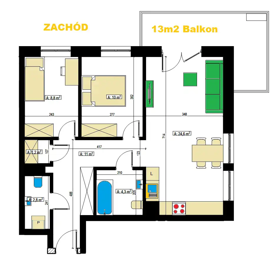 4-pokojowe o powierzchni 77 m2
