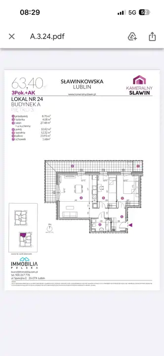 Aktualnie w ofercie dostępne jest jeszcze mieszkanie o pow 63,40mkw- również 3 pokojowe.