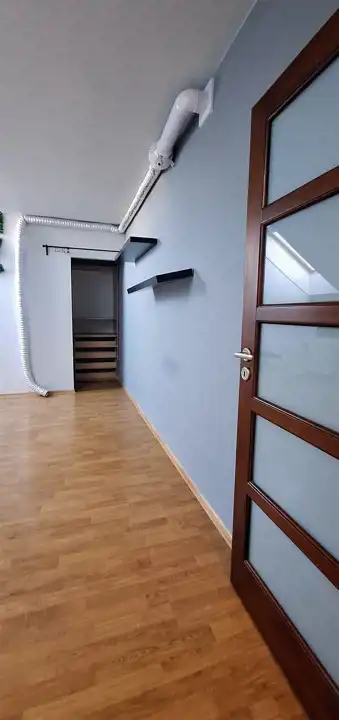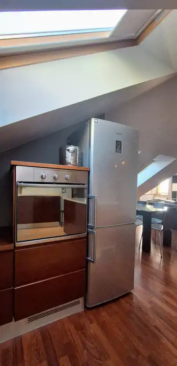 Mieszkanie bardzo widne - 11 okien, w tym 7 dachowych. Ogrzewanie i ciepła woda z pieca dwu-funkcyjnego.