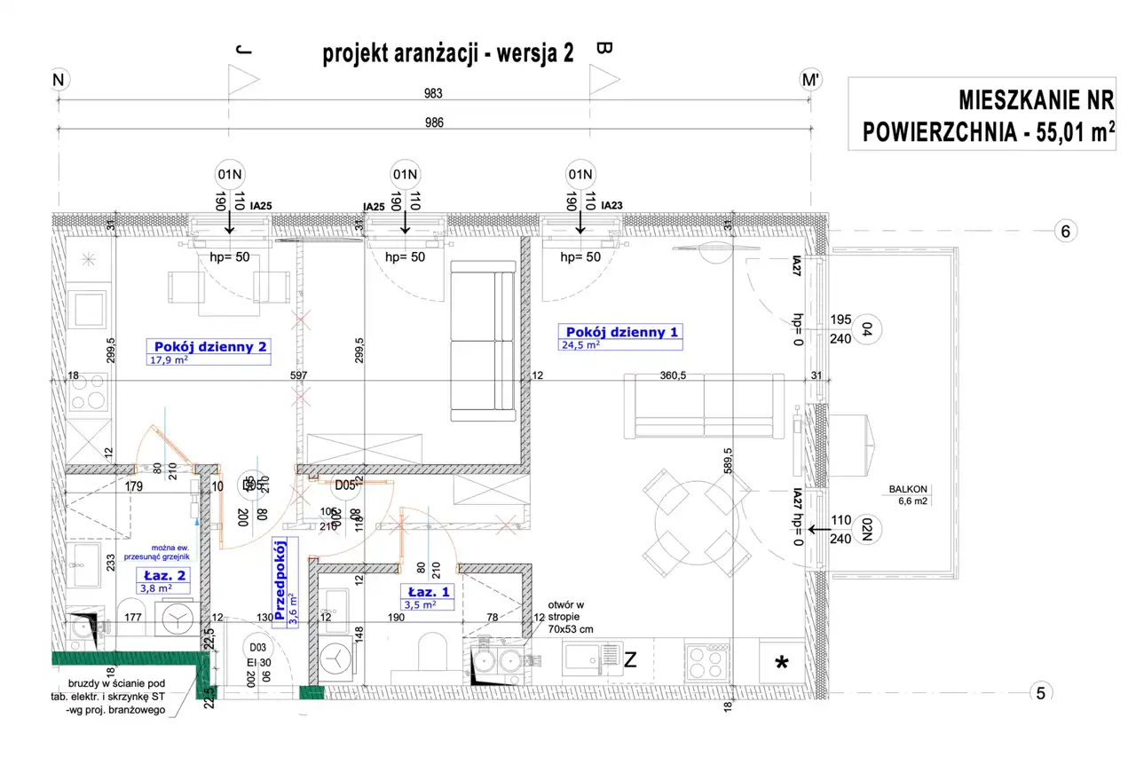- Charakterystyka mieszkania 55.01 m2, 3 pokoje