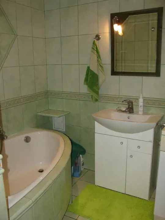 - Media Ogrzewanie: C.O. miejskie; Woda: ciepła - piecyk gazowy