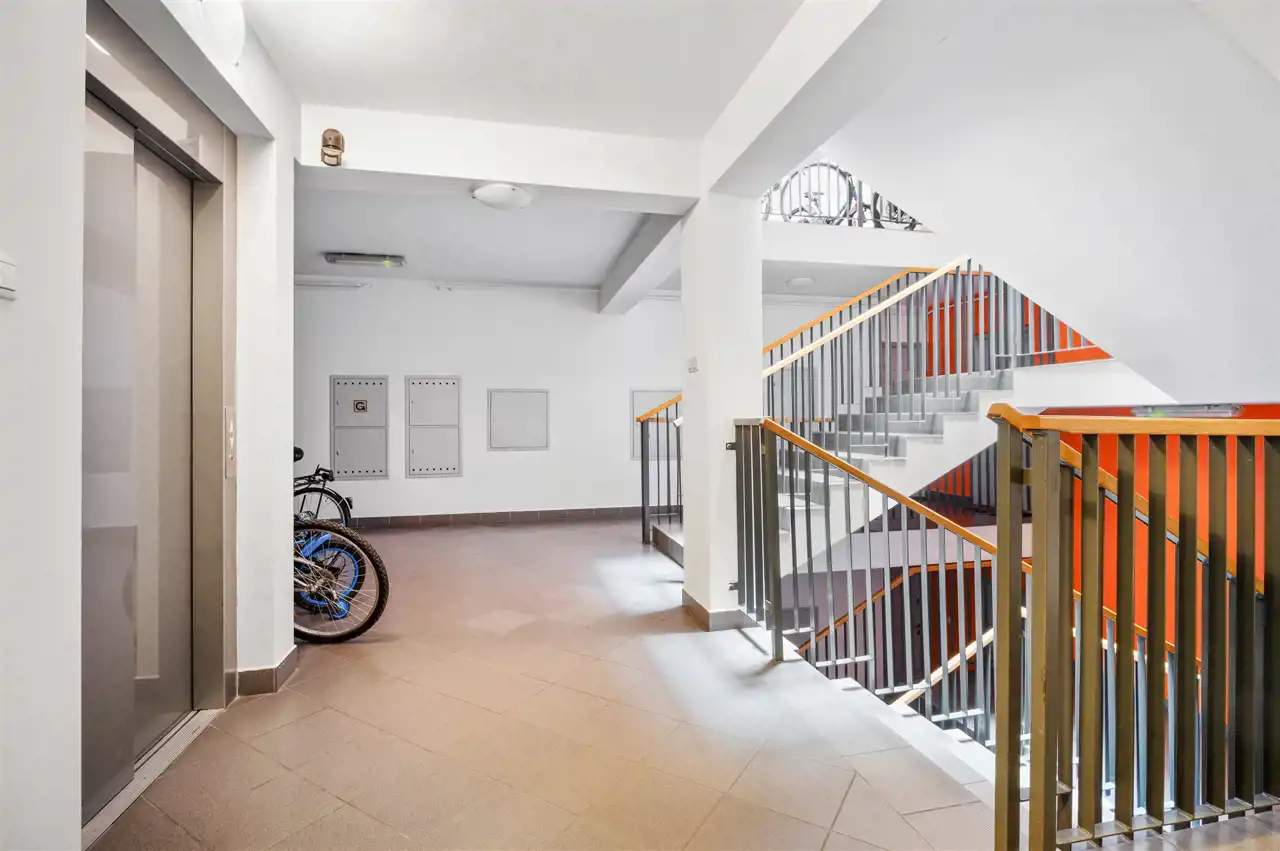 Budynek powstał w nowoczesnej technologii, z windą i garażem podziemnym z miejscami postojowymi.
