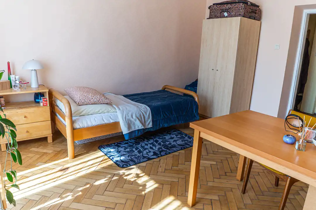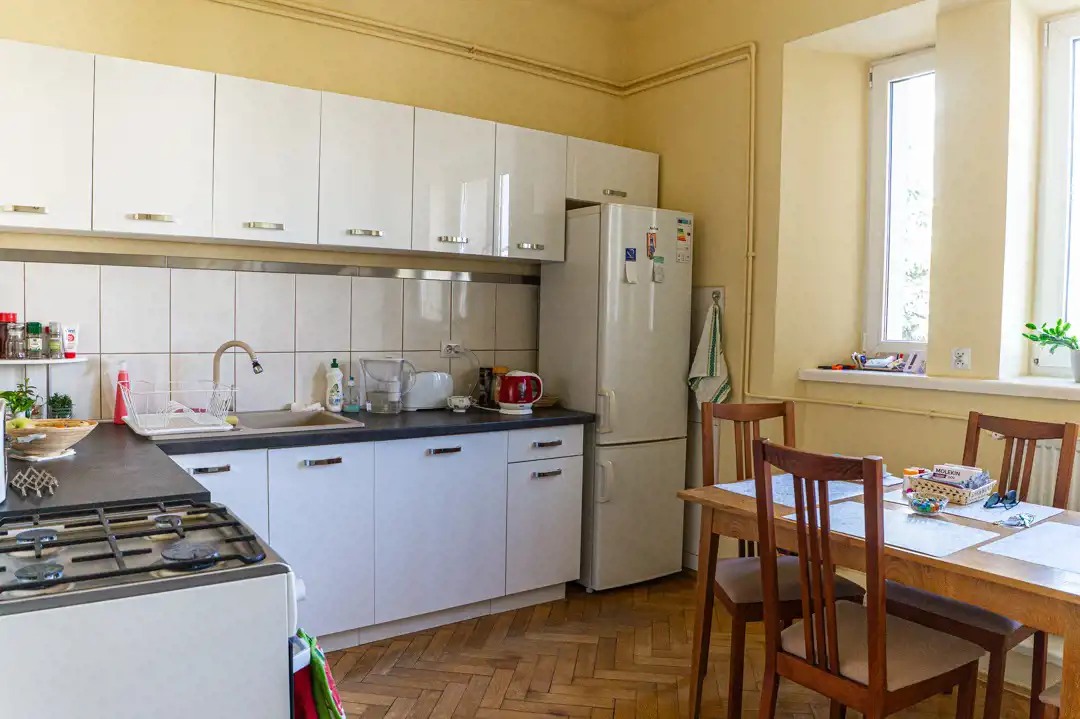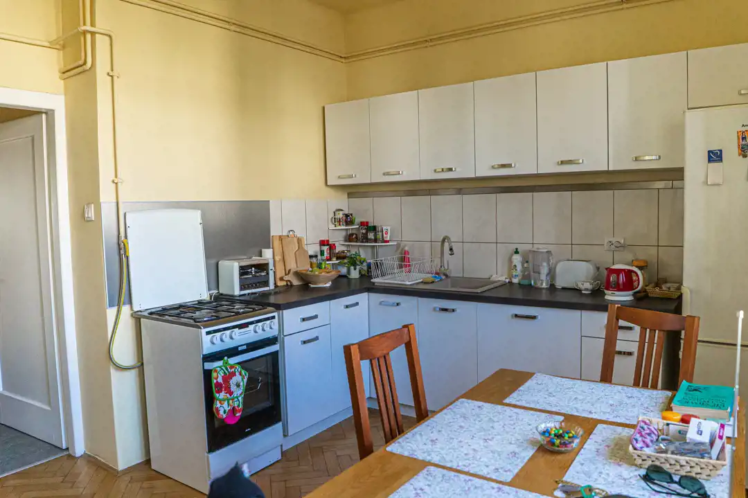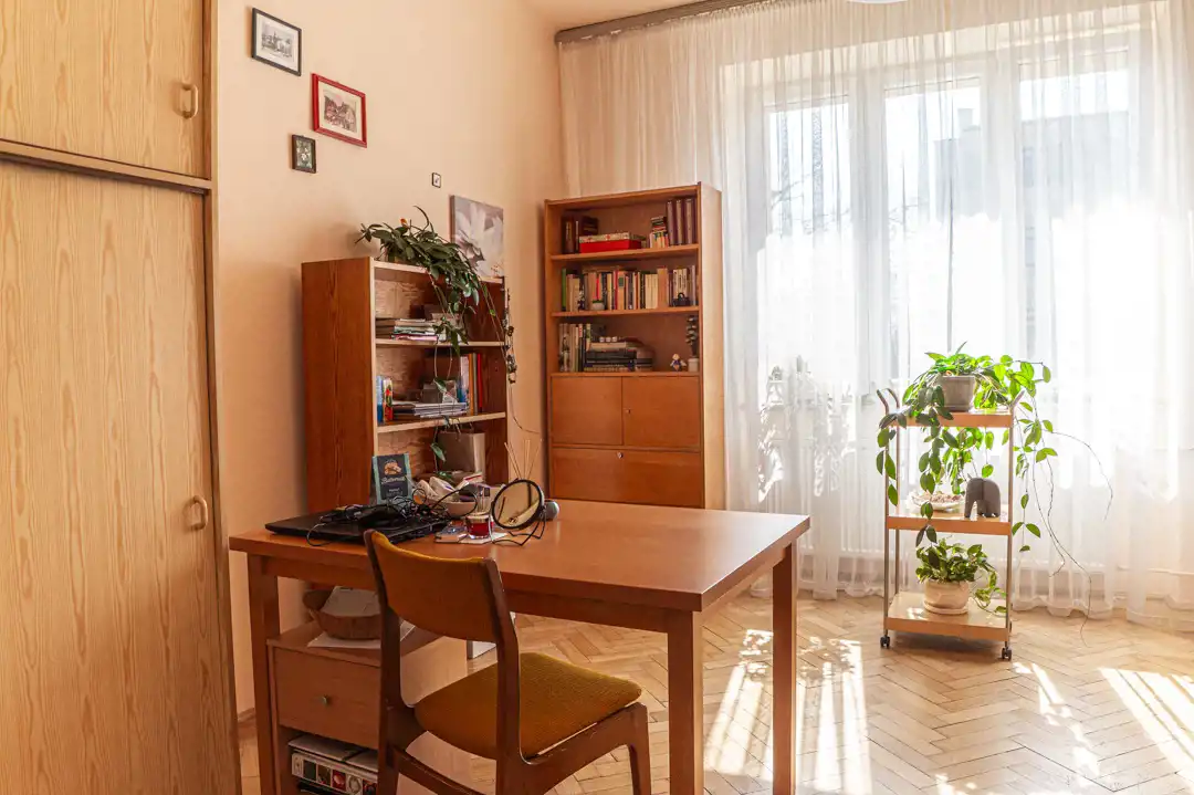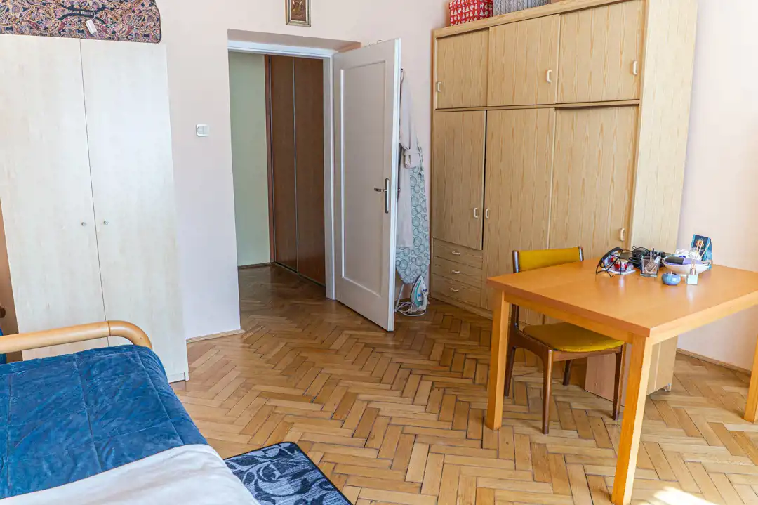 Ładne, duże i ustawne mieszkanie w pobliżu miasteczka akademickiego. Lokal położony na I piętrze w odnowionej kamienicy z 1932 r. Dom w zacisznej części dzielnicy, z dobrym dojazdem do centrum i uczelni. Mieszkanie składa się z dwóch przestronnych pokoi, dużej kuchni, łazienki i balkonu. Lokal posiada własne ogrzewanie i ciepłą wodę z pieca gazowego. Do mieszkania przynależy bardzo duża piwnica. Właściciel posiada udziały w gruncie, na którym ma garaż typu blaszak. Jest to dodatkowy atut oferty ponieważ istnieją trudności z parkowaniem przed budynkiem. Garażem jest za dodatkową kwotę do uzgodnienia. Mieszkanie jest jasne, przestronne dobrze nasłonecznione z wystawą okien na południe i w kuchni na północ.