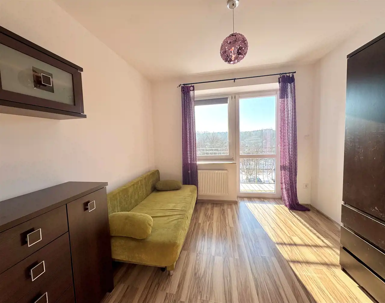 Nieruchomość o powierzchni 73,7 m2 składa się z oddzielnego salonu, dwóch sypialni (jedna z wyjściem na balkon), dużej i zamykanej kuchni, łazienki oraz przestronnego przedpokoju.