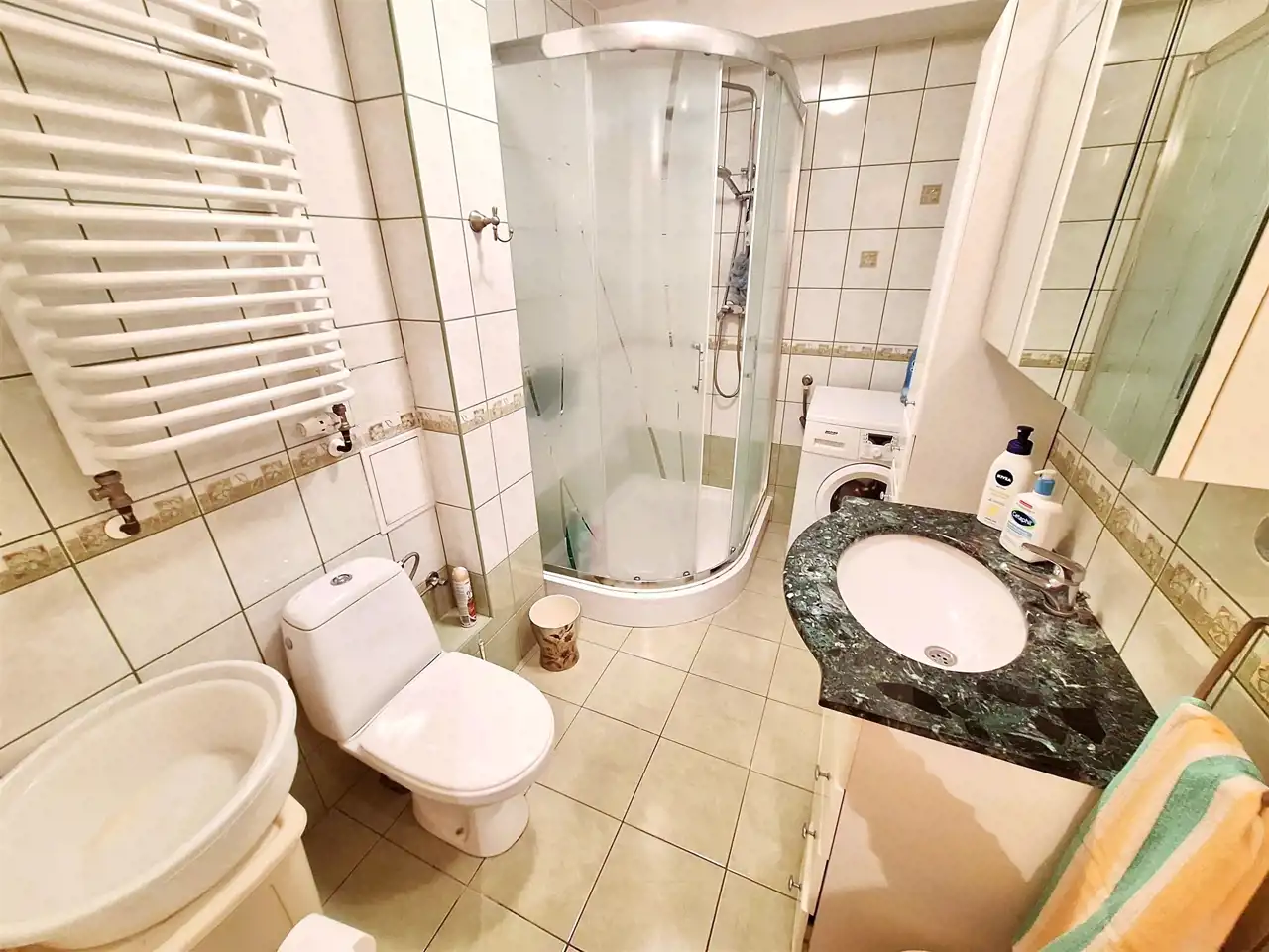 - łazienki o powierzchni 4,74m2 wyposażonej w kabinę prysznicową;