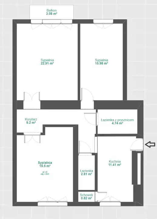 - pokoju o powierzchni 22,91m2 z wyjściem na balkon oraz oknami od strony wschodniej;