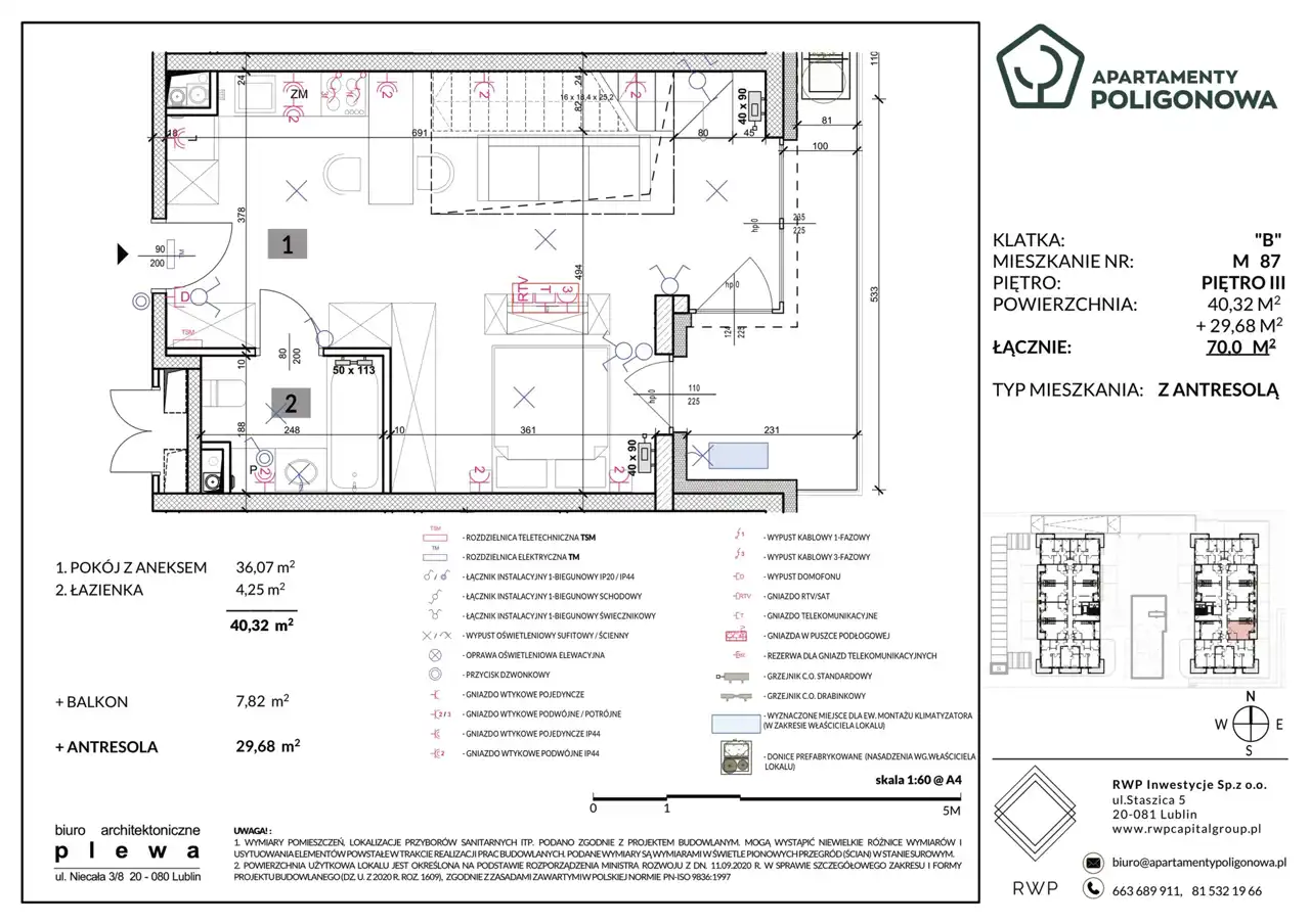 Mieszkanie z antresolą na III piętrze budynku w trakcie realizacji na Botaniku. Salon z aneksem kuchennym o pow. 36,07m2. Łazienka z WC 4,25m2. Antresola o pow. 29,68m2 z wyjściem na taras.
