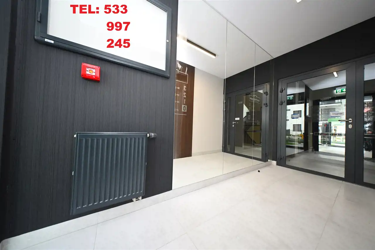Nowoczesny budynek zaopatrzony w windy z dojazdem do poziomu -1 gdzie znajdują się miejsca postojowe i komórki lokatorskie .