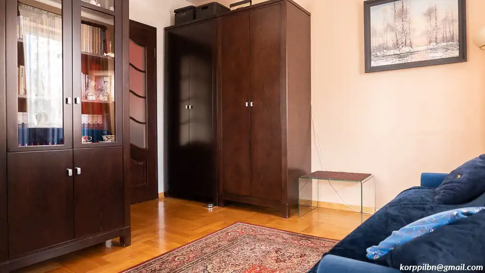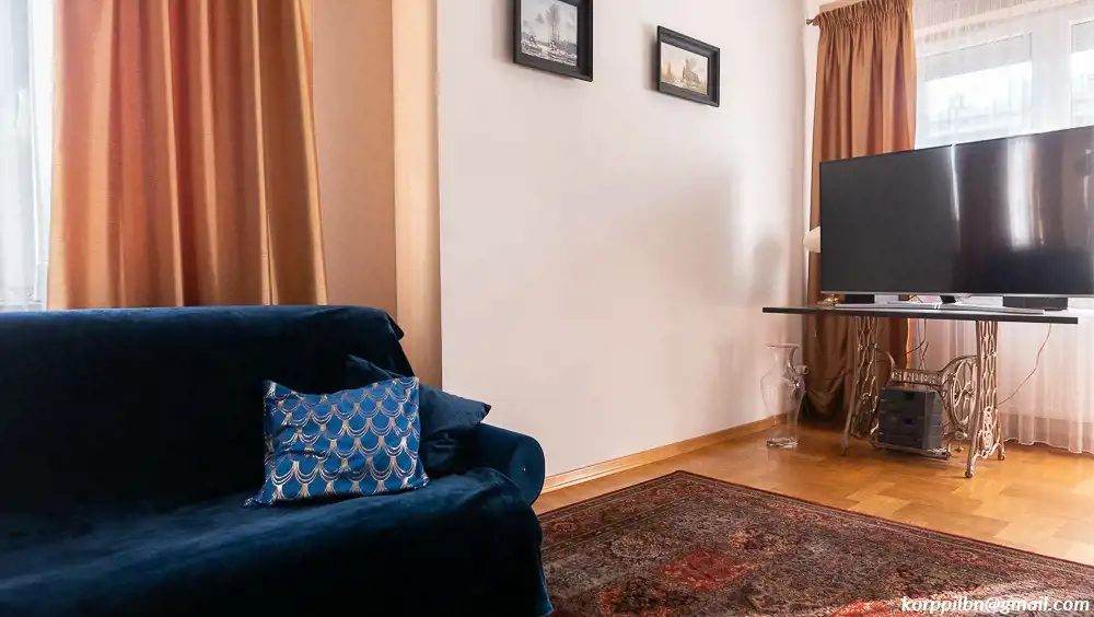 Salon z wyjściem na balkon. Sypialnia, pokój z wyjściem na drugi balkon. Oddzielna kuchnia (zabudowa i sprzęt AGD). Łazienka z wc (kabina prysznicowa i wanna). Na podłogach parkiet, gres. Mieszkanie wykończone wysokiej jakości materiałami z dbałością o szczegóły przez projektanta wnętrz. W pierwotnym układzie w mieszkaniu wydzielone były 3 sypialnie. Klimatyzacja, alarm. Komórka lokatorska na piętrze. Dodatkowo dwa miejsca w garażu podziemnym po 50tys.