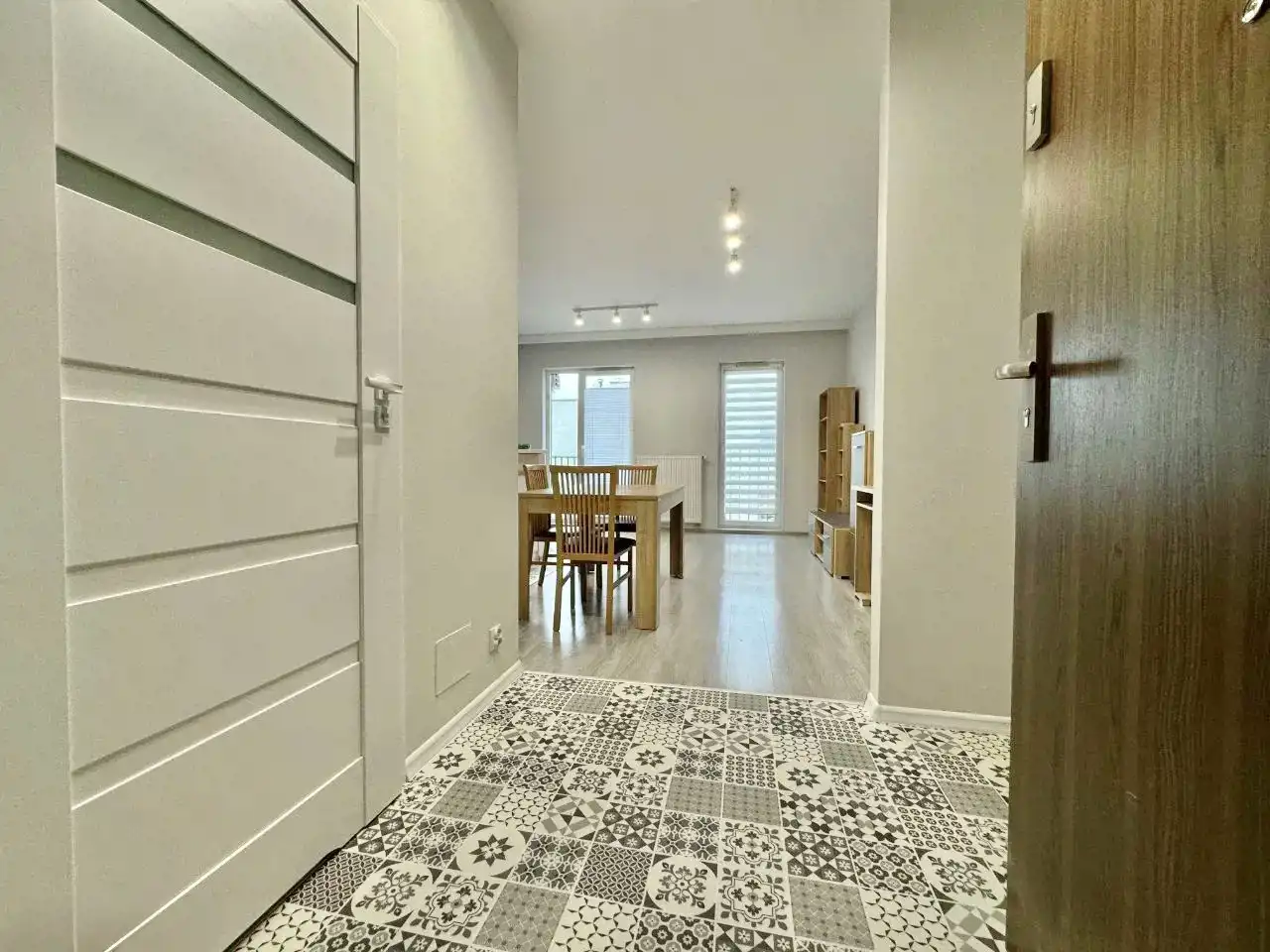 Piętro 2, powierzchnia 30 m2 składa się z pokoju z aneksem kuchennym, łazienki z toaletą oraz przedpokoju. Mieszkanie posiada balkon. Całe mieszkanie jest w pełni umeblowane i wyposażone. W tym roku została założona klimatyzacja. W salonie rozkładana sofa, stół z krzesłami, szafka pod TV, biurko i szafa. Druga duża szafa w zabudowie znajduje się w przedpokoju. Kuchnia wyposażona w zmywarkę, piekarnik, płytę indukcyjną, lodówko-zamrażarkę. Łazienka wyposażona w kabinę prysznicową, pralkę.