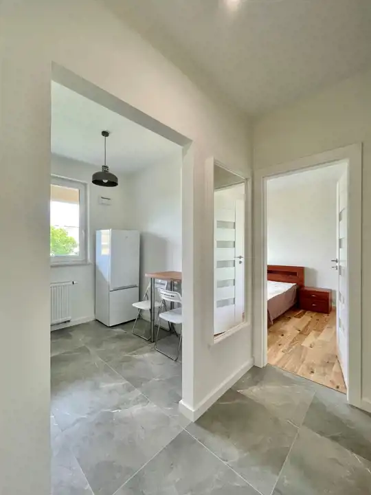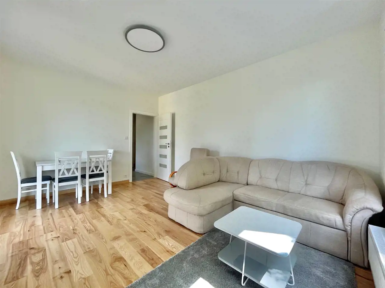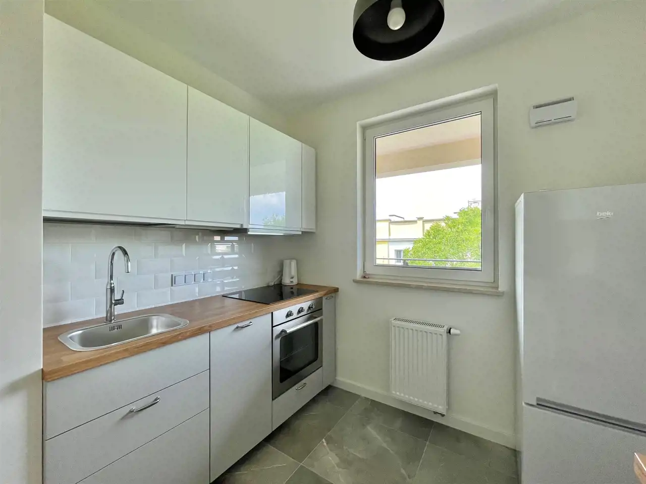 Mieszkanie znajduje się na 4 piętrze, powierzchnia 48 m2 składa się z dwóch pokoi (sypialnia, salon), oddzielnej kuchni, łazienki z toaletą oraz przedpokoju. Mieszkanie posiada duży balkon na który wyjść można z salonu oraz z sypialni. Całe mieszkanie jest w pełni umeblowane i wyposażone w dobrym standardzie. W salonie znajduje się rozkładana narożna sofa, stolik kawowy, meble pod RTV, stół z krzesłami, fotel. W sypialni znajduje się duże wygodne łóżko z szafkami nocnymi po bokach oraz duża pojemna szafa w zabudowie. Druga duża szafa w zabudowie znajduje się w przedpokoju. Kuchnia w nowoczesnej zabudowie wyposażona jest w zmywarkę, piekarnik, płytę indukcyjną, lodówko-zamrażarkę. W łazience znajduje się wanna z funkcją prysznica, umywalka, pralka. Mieszkanie tanie w utrzymaniu. Ogrzewanie oraz ciepła woda z sieci miejskiej zaliczkowane w czynszu. Dodatkowo płatny prąd według zużycia. W mieszkaniu jak i w całym bloku nie ma gazu! Mieszkanie dostępne od zaraz. Bardzo gorąco polecam i zapraszam na prezentację.