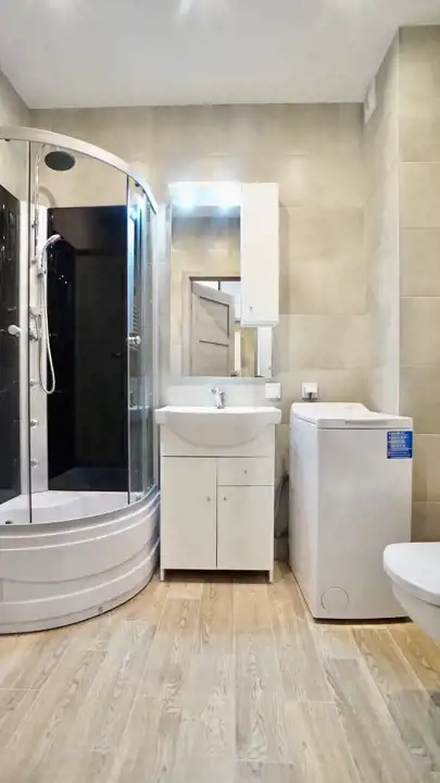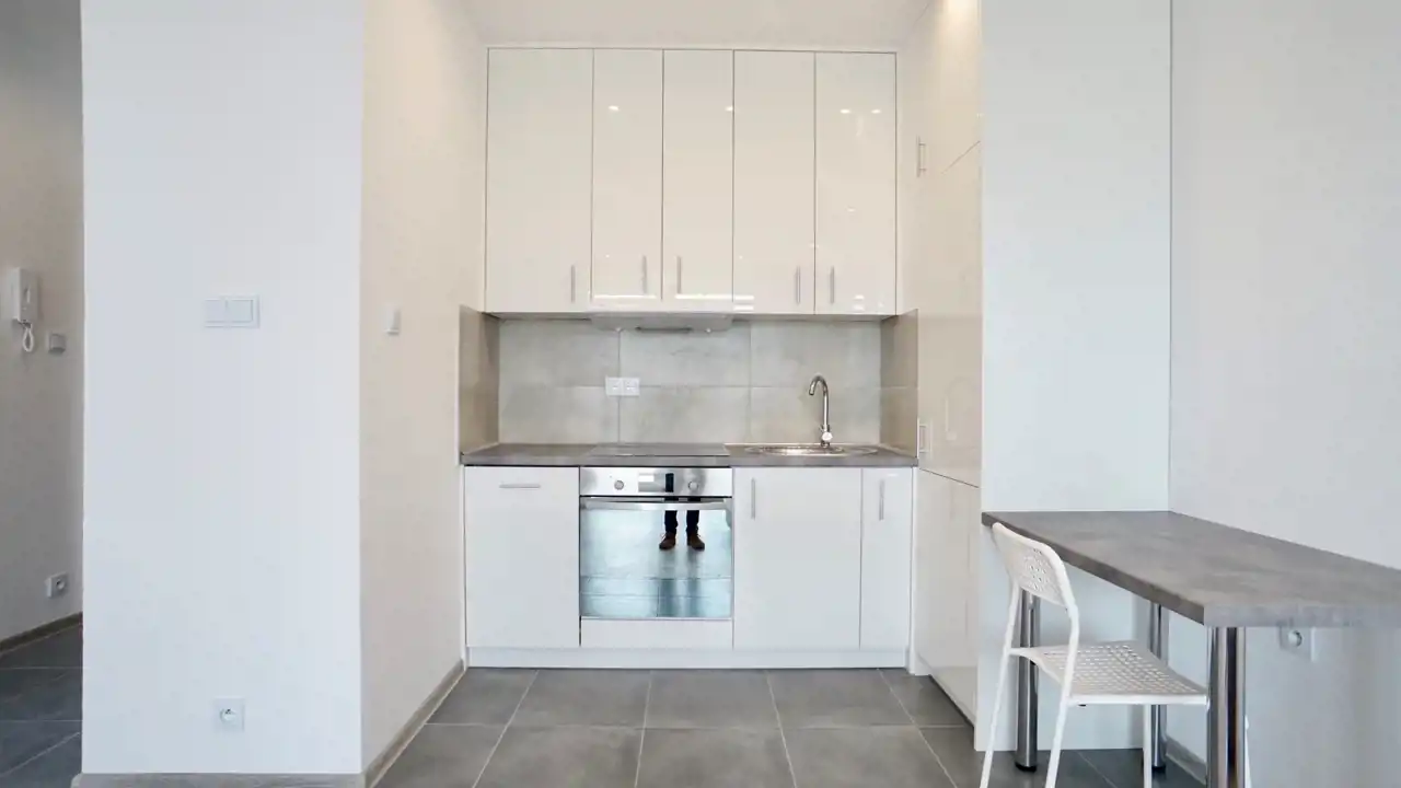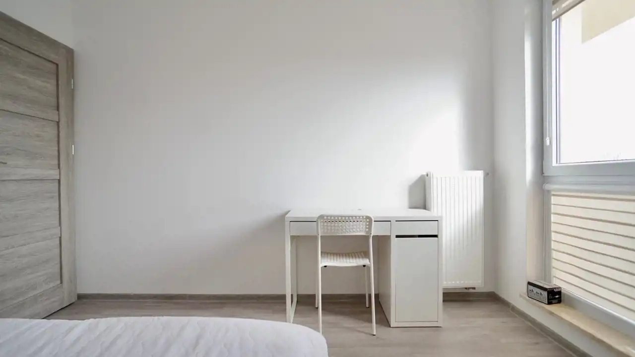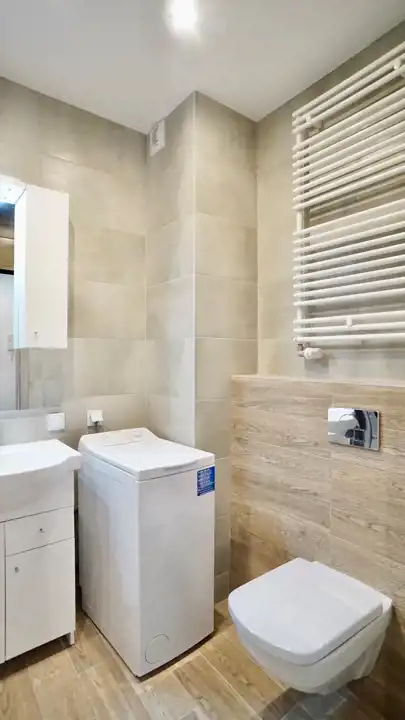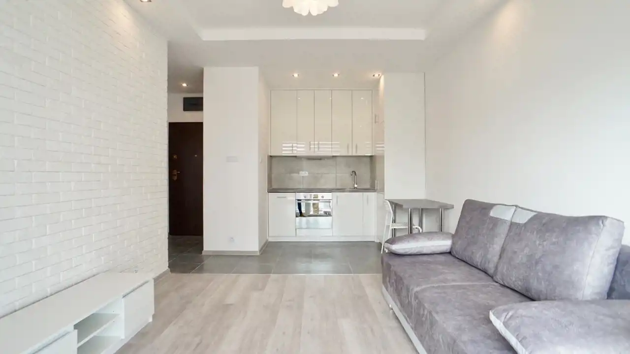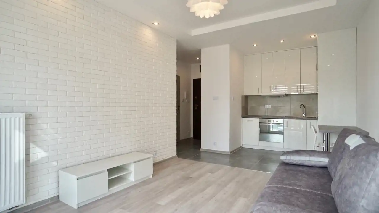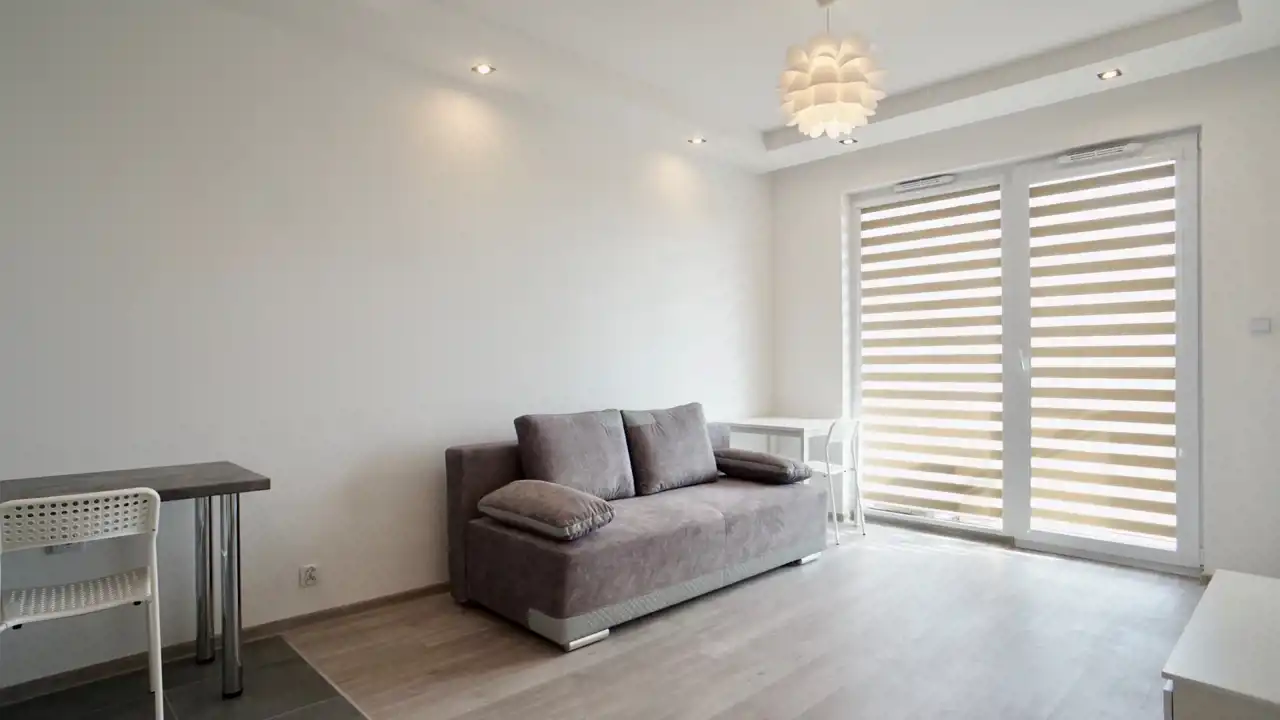 Apartment is located on the 3rd floor, area of 40 m2 consists of a living room with open kitchen, bedroom, bathroom with toilet, hall and balcony. Whole apartment is fully furnished and equipped to a good standard. The bedroom has a comfortable bed, desk with chair, wardrobe. The living room has a sofa bed, TV shelf, table with chairs. Kitchen in a modern furniture with a dishwasher, oven, induction hob, fridge Freezer. The bathroom has a washing machine + shower. Apartment available immediately. Heating and hot water up to the limit included. I highly recommend it. Call today and arrange a viewing!