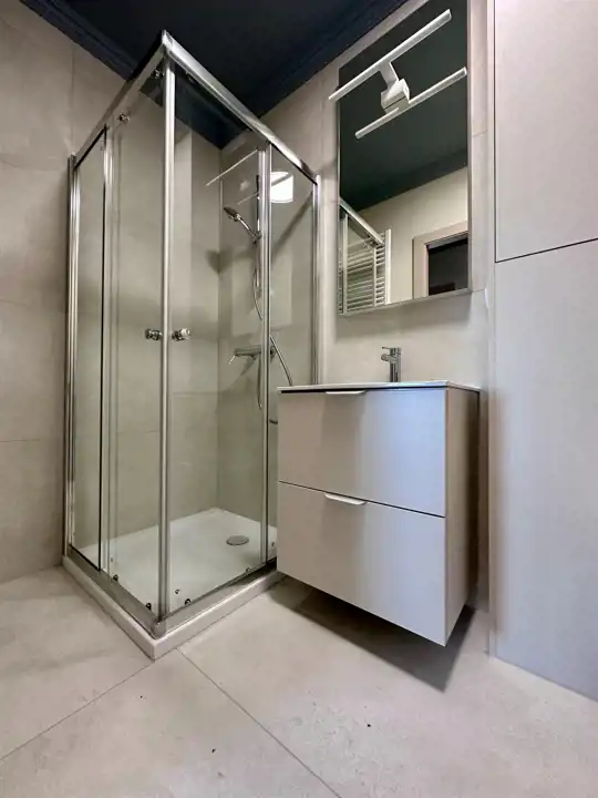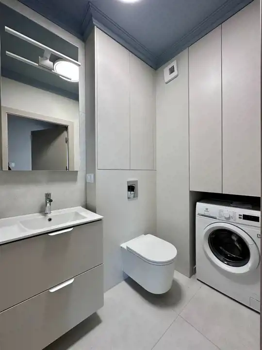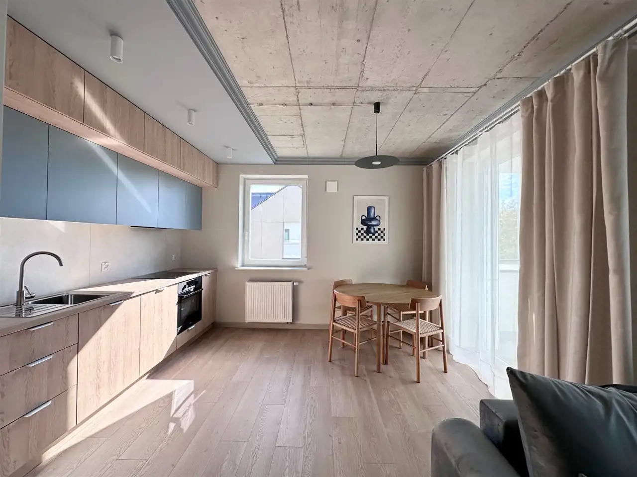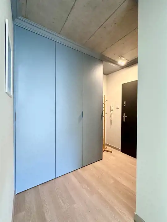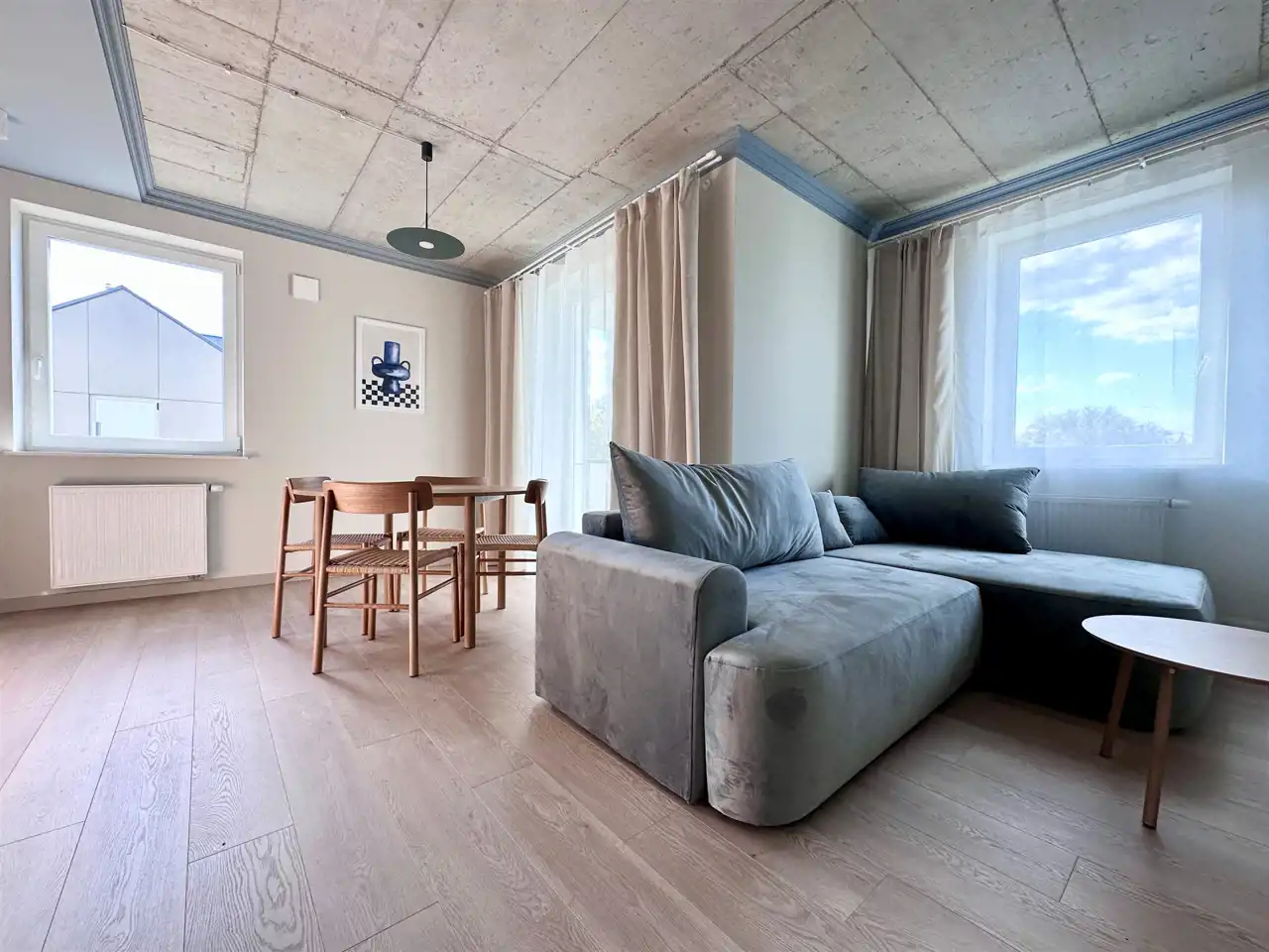 Powierzchnia 40 m2. składa się z salonu z aneksem kuchennym, sypialni, łazienki z toaleta oraz przedpokoju. Całość jest w pełni umeblowanie i wyposażone w wysokim standardzie. Mieszkanie bardzo funkcjonalnie urządzone. W salonie znajduje się sofa, stół i 4 krzesła. Kuchnia wykonana na wymiar wyposażona we wszystkie potrzebne sprzęty, piekarnik, płytę indukcyjna, zmywarkę, . W sypialni duże wygodne łóżko oraz szafa. W łazience prysznic, umywalka, pralka. w przedpokoju znajduje się duża szafa w zabudowie na ubrania wierzchnie oraz szafka na buty .