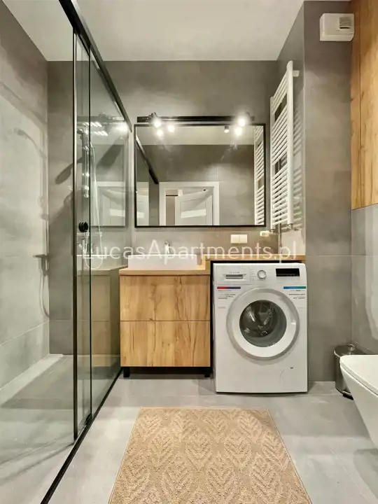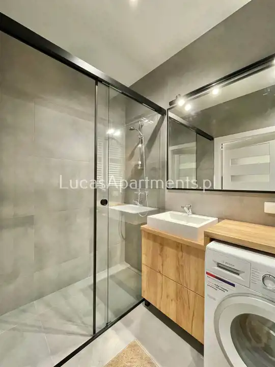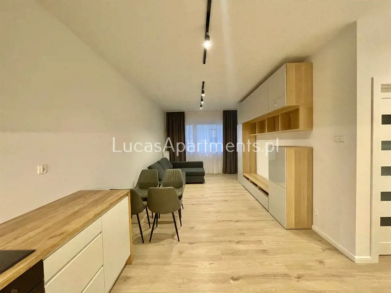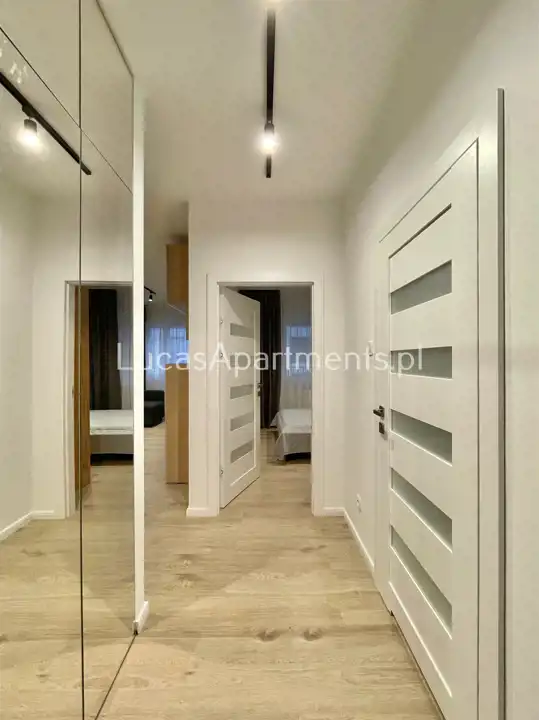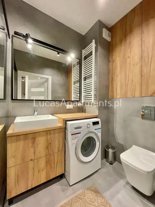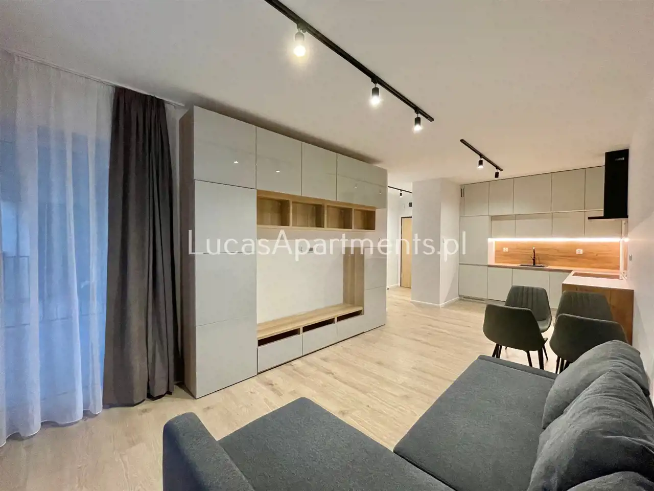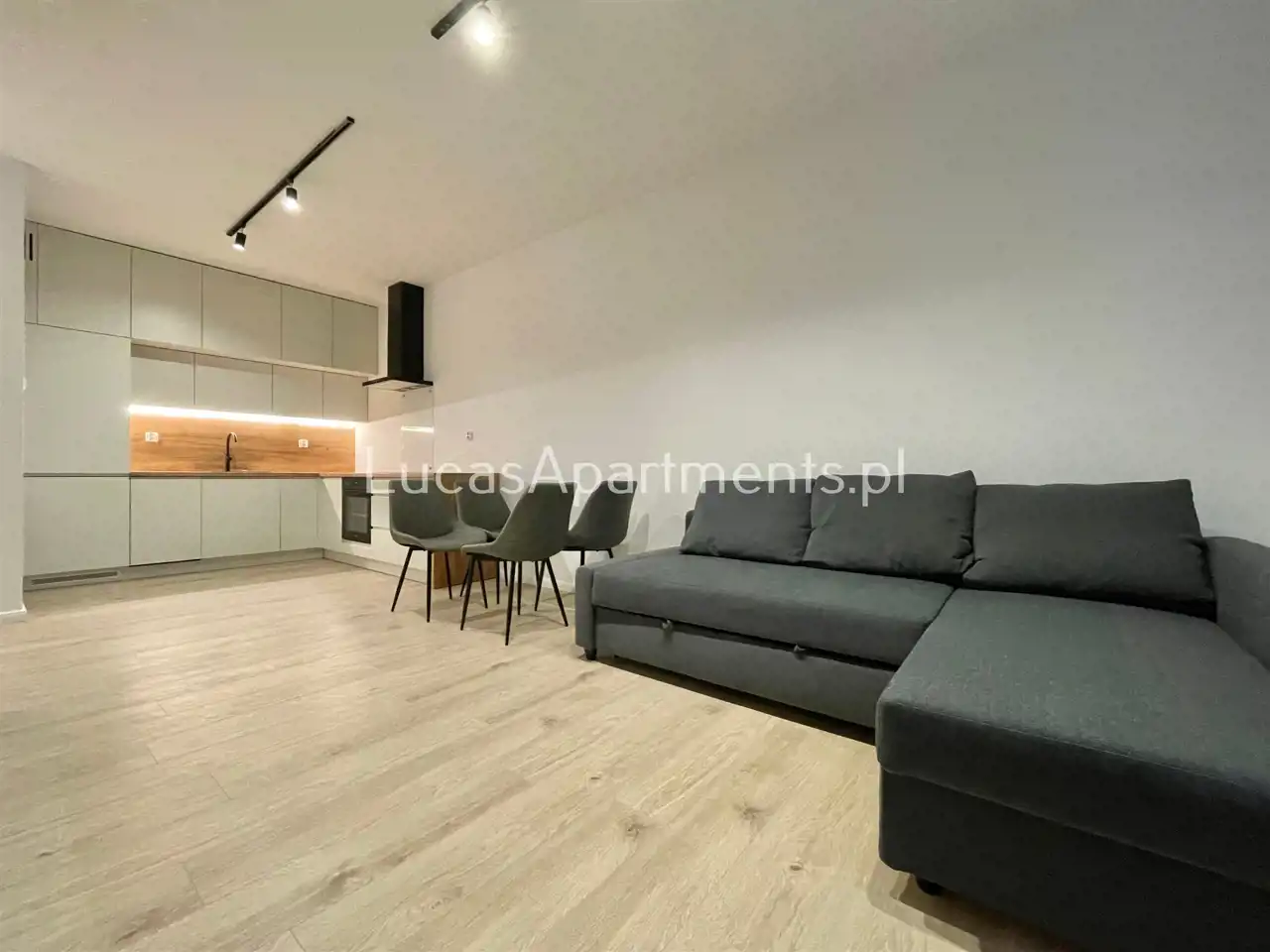 Mieszkanie znajduje się na 2 piętrze, powierzchnia 41,5 m2 składa się z dużego salonu z aneksem kuchennym, sypialni, łazienki z toaletą oraz przedpokoju. Mieszkanie posiada balkon. Całość jest w pełni umeblowana i wyposażona w wysokim standardzie. W salonie znajduje się stół z krzesłami, rozkładana narożna sofa, meble pod RTV z szafkami. W sypialni stoi duże łóżko z materacem + szafa duża szafa. Druga szafa w zabudowie znajduje się w przedpokoju. Kuchnia w nowoczesnej zabudowie wyposażona jest w zmywarkę, piekarnik, płytę indukcyjną, lodówko-zamrażarkę. Łazienka z WC wyposażona w kabinę prysznicową, umywalkę, pralkę. Ogrzewanie oraz ciepła woda z sieci miejskiej. W budynku nie ma gazu! Dostępne od zaraz, do obejrzenia w każdej chwili. Bardzo gorąco polecam i zapraszam na prezentację.