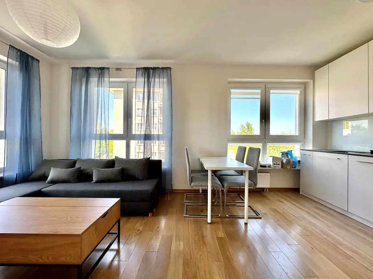 Do wynajęcia 3-pokojowe mieszkanie (salon z aneksem + 2 sypialnie) w doskonałej lokalizacji, Centrum, Al. Kompozytorów Polskich, boczna ul. Północnej. Inwestycja "Dwie Wierze" oddana do użytku w 2023 r. W budynku cichobieżne windy, domofon. Bardzo blisko Uniwersytet Medyczny UM przy ul. Chodźki.