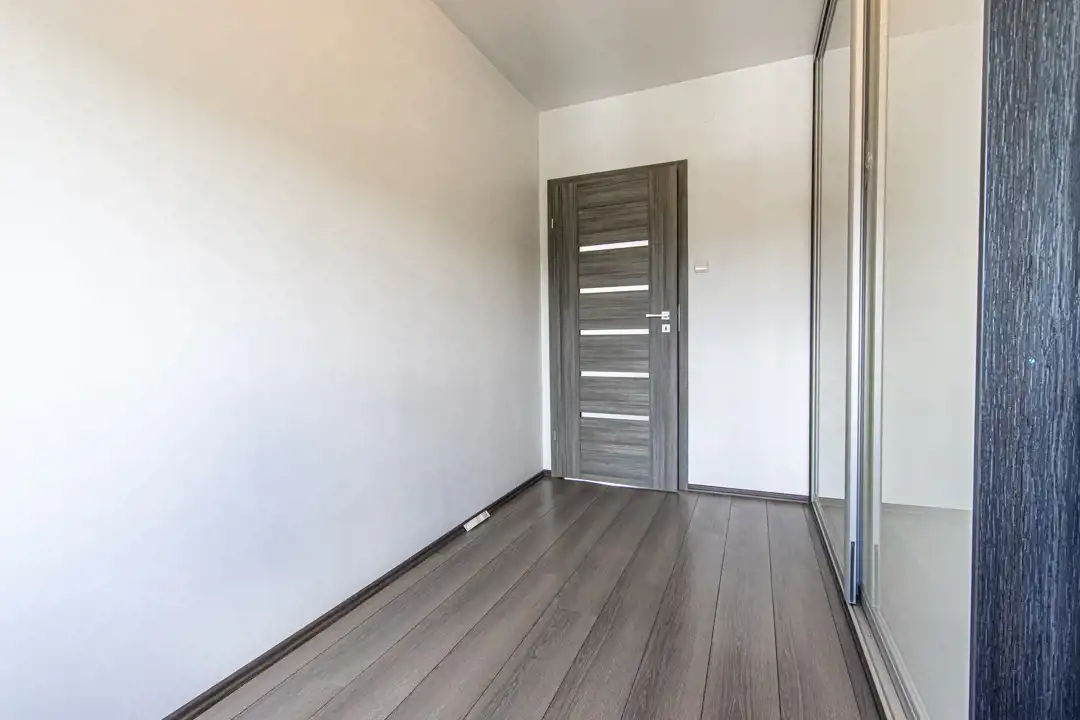 Lokal mieszkalny składa się z salonu z aneksem kuchennym, dwóch sypialni i łazienki z WC. Z największego pokoju wyjście na balkon z widokiem na zielone osiedle.