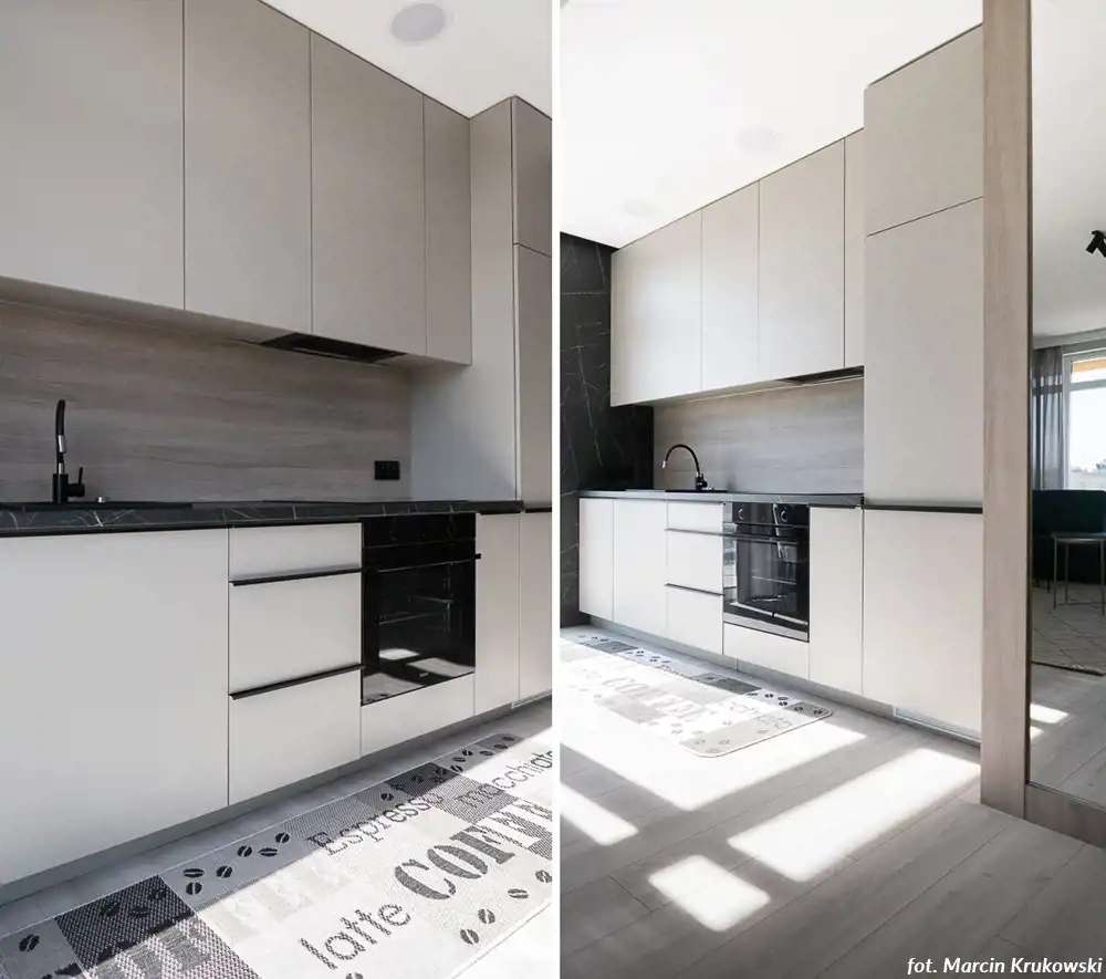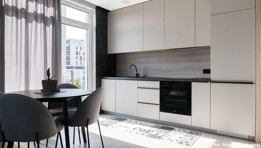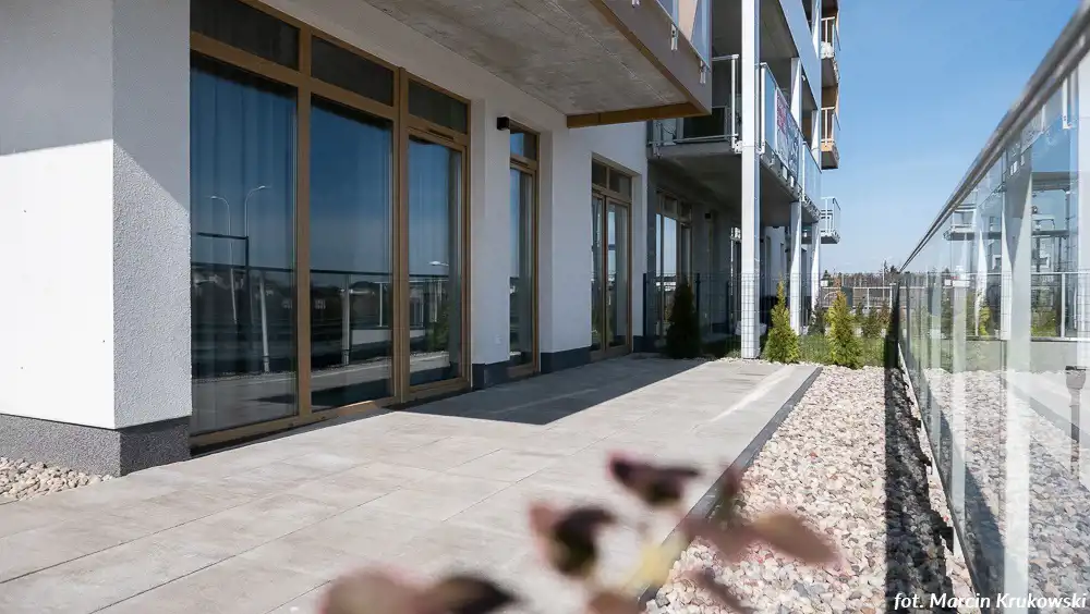 Aneks kuchenny połączony z salonem: zabudowa kuchenna, sprzęt AGD (lodówka, kuchenka, piekarnik, zmywarka), sypialnia, łazienka z wc (kabina prysznicowa, pralka), ogródek 55,29m2. Miejsce postojowe w garażu podziemnym.