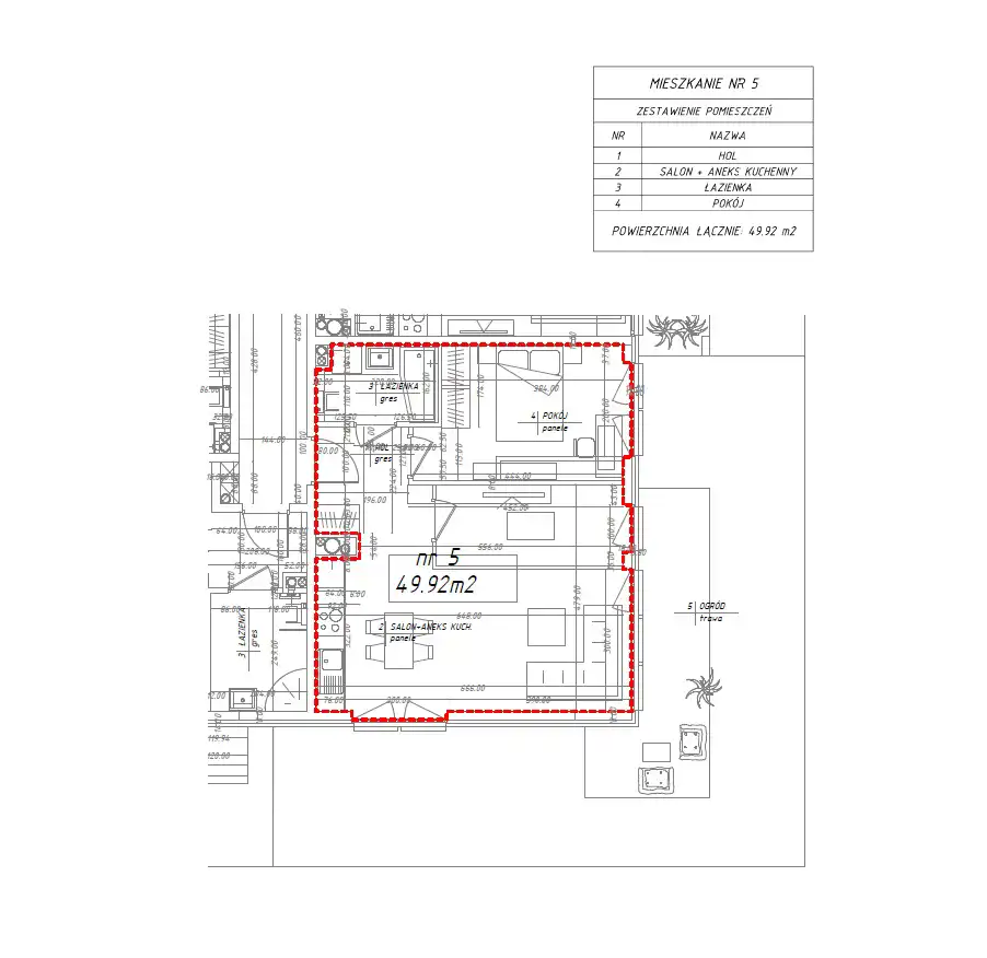- Charakterystyka mieszkania 49.92 m2, 2 pokoje