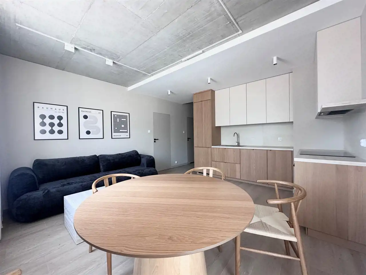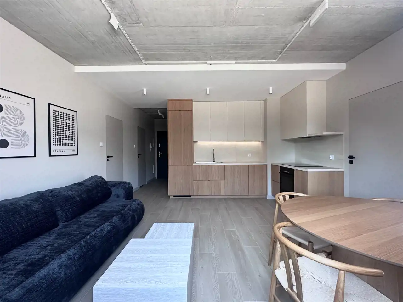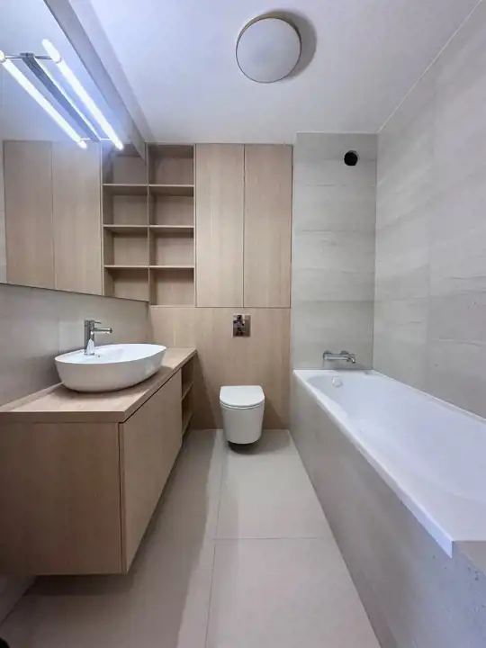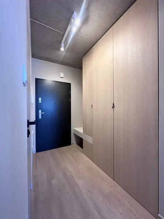 Powierzchnia 49 m2. składa się z salonu z aneksem kuchennym, dwóch sypialni, łazienki z toaleta oraz przedpokoju. Całość jest w pełni umeblowanie i wyposażone w wysokim standardzie. Mieszkanie bardzo funkcjonalnie urządzone. W salonie znajduje się sofa, stół i 4 krzesła. Kuchnia wykonana na wymiar wyposażona we wszystkie potrzebne sprzęty, piekarnik, płytę indukcyjna, zmywarkę, . W sypialni duże wygodne łóżko oraz dwie szafy w zabudowie. Druga sypialnia pozostała pusta z możliwością zaaranżowania pod klienta. W łazience wanna, umywalka, pralka. w przedpokoju znajduje się duża szafa w zabudowie na ubrania wierzchnie oraz szafka na buty .