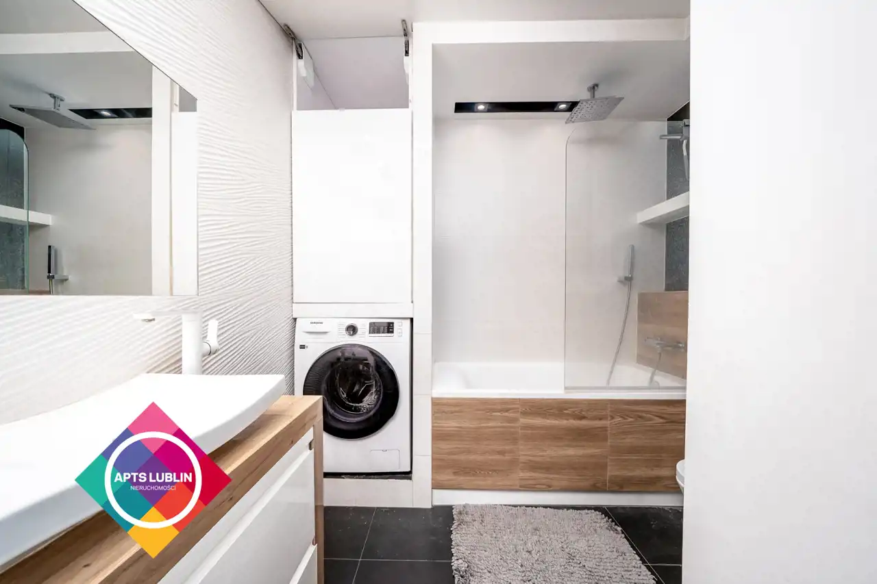 The building is in an excellent location – nearby you’ll find shops (Auchan), Olimp shopping mall, cinema, gyms, and Medical University.