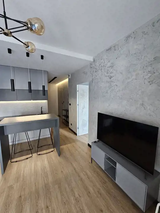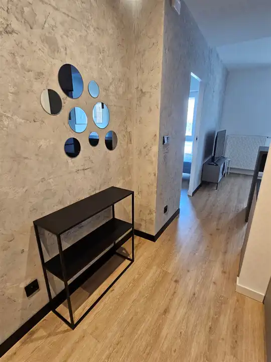 Mieszkanie zostało wykończone w bardzo dobrym standardzie i zaprojektowane tak, aby zapewnić maksymalną funkcjonalność. Składa się z salonu z aneksem kuchennym, oddzielnej sypialni oraz łazienki. Dodatkowymi atutami są: balkon, komórka lokatorska oraz miejsce parkingowe w garażu podziemnym – wliczone w cenę najmu. W lokalu znajduje się dużo przestrzeni do przechowywania – pojemne szafy w sypialni, przedpokoju i łazience pozwalają na wygodne zagospodarowanie rzeczy.