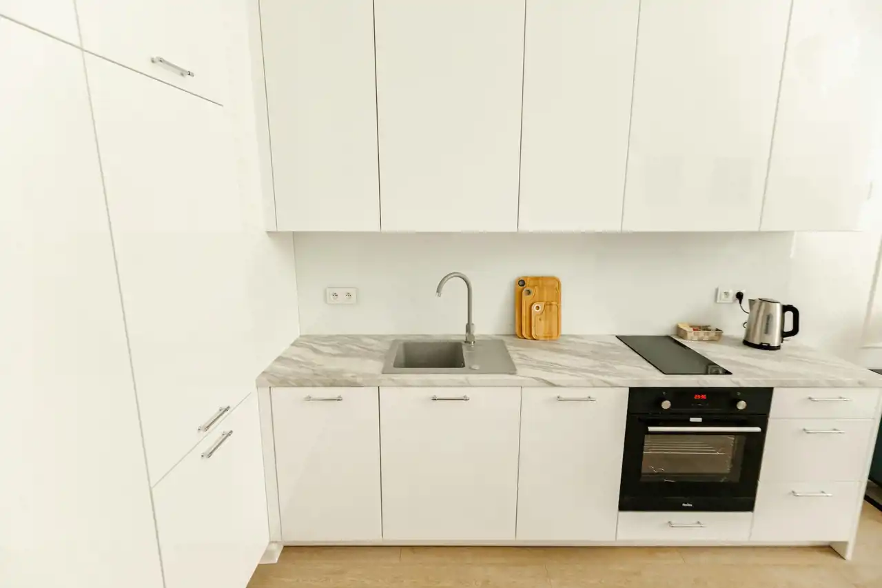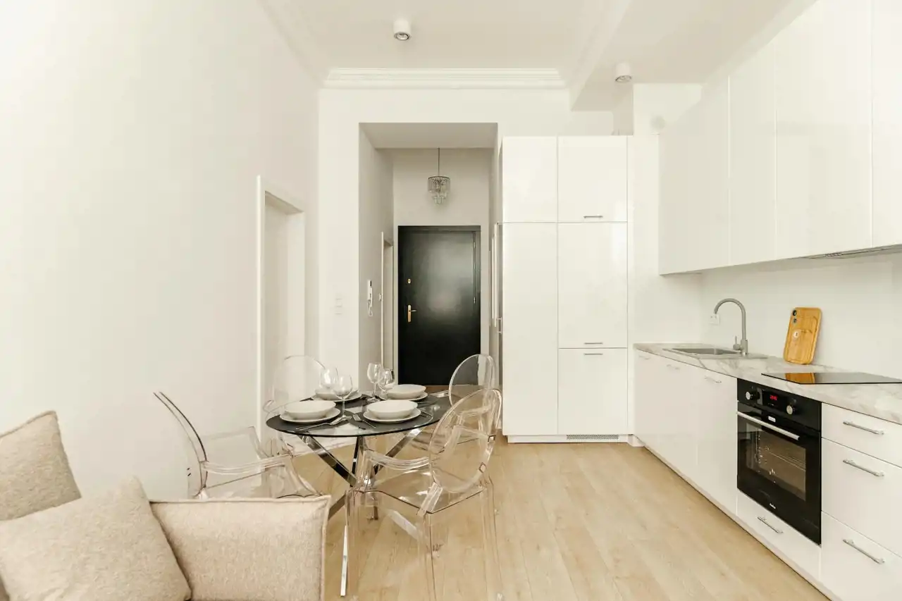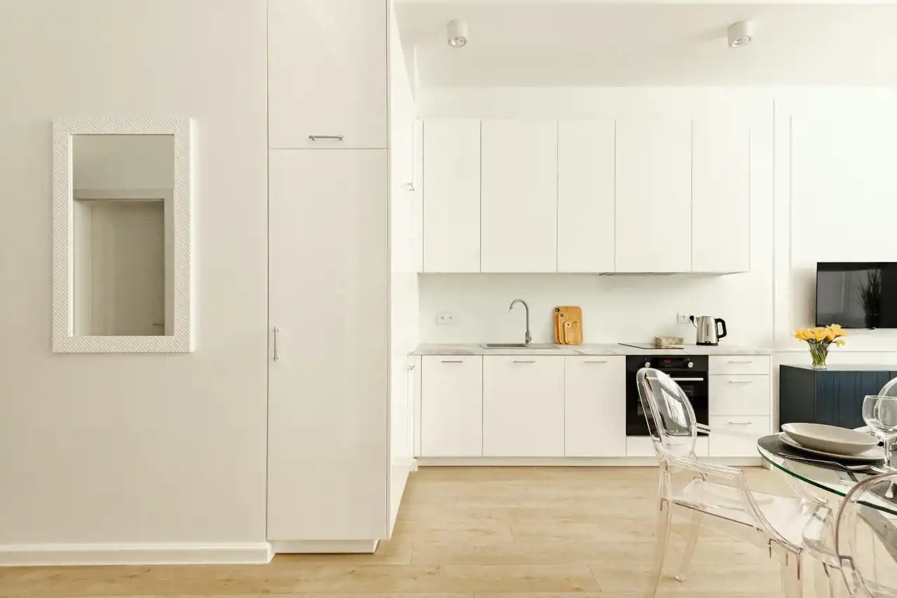 Na powierzchni 43 mkw, znajduje się: - komfortowo urządzony salon z nowoczesnym aneksem kuchennym oraz jadalnią , sypialnia z wygodnym łóżkiem małżeńskim oraz dużą ilością szaf w zabudowie - łazienka z prysznicem i toaletą - przedpokój.