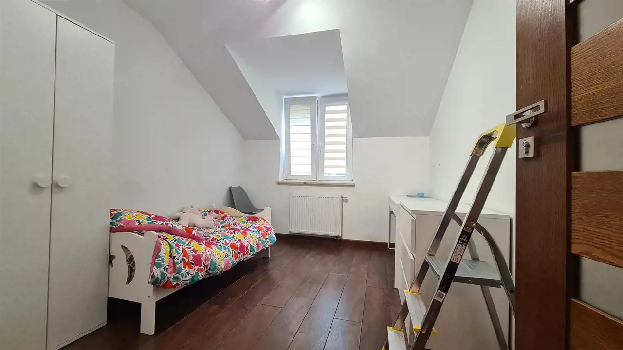 Poddasze to 3 sypialnie i łazienka.