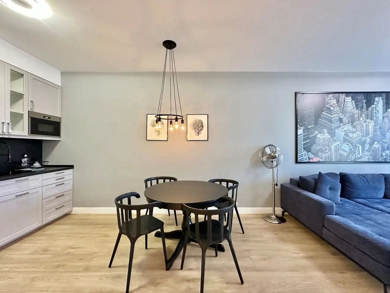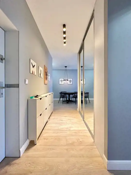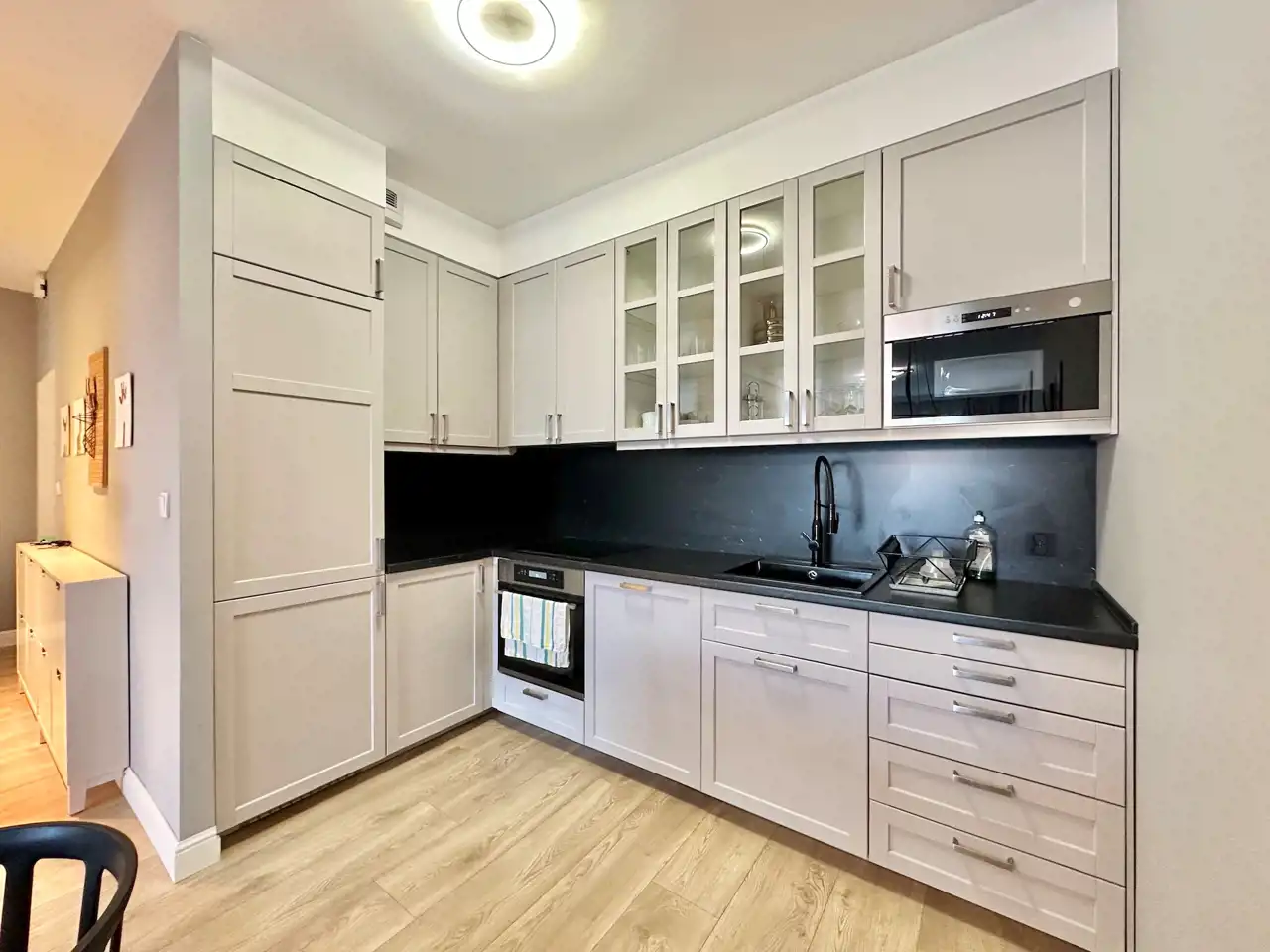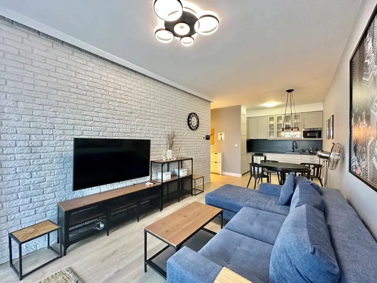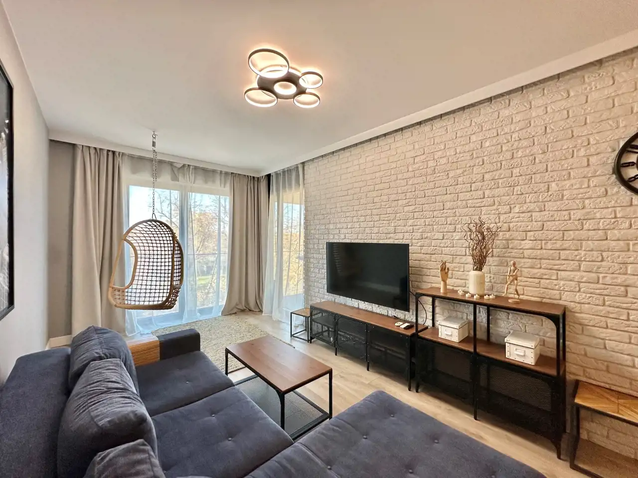 Apartment is located on the 3rd floor, area of 64 m2 consists of a large living room with open kitchen, a bedroom, a smaller room, a bathroom with a toilet and a hall. Apartment has a balcony with a loggia which can be accessed from each room. Whole apartment is fully furnished and equipped to a high standard with attention to detail, very functional. The living room has a corner sofa bed, coffee table, table with chairs, and a SMART TV. Modern kitchen equipped with a dishwasher, oven, induction hob, fridge-freezer, microwave. The bedroom has a large comfortable bed 180x200 + a large wardrobe. The second large built-in wardrobe is located in the hall. bathroom equipped with a shower, sink, washer-dryer. Apartment is bright and spacious. Available immediately. I highly recommended. Call us today and arrange a viewing!