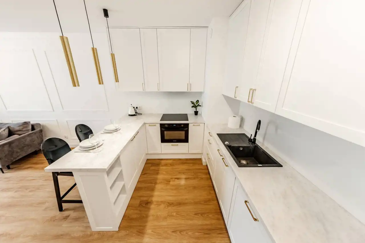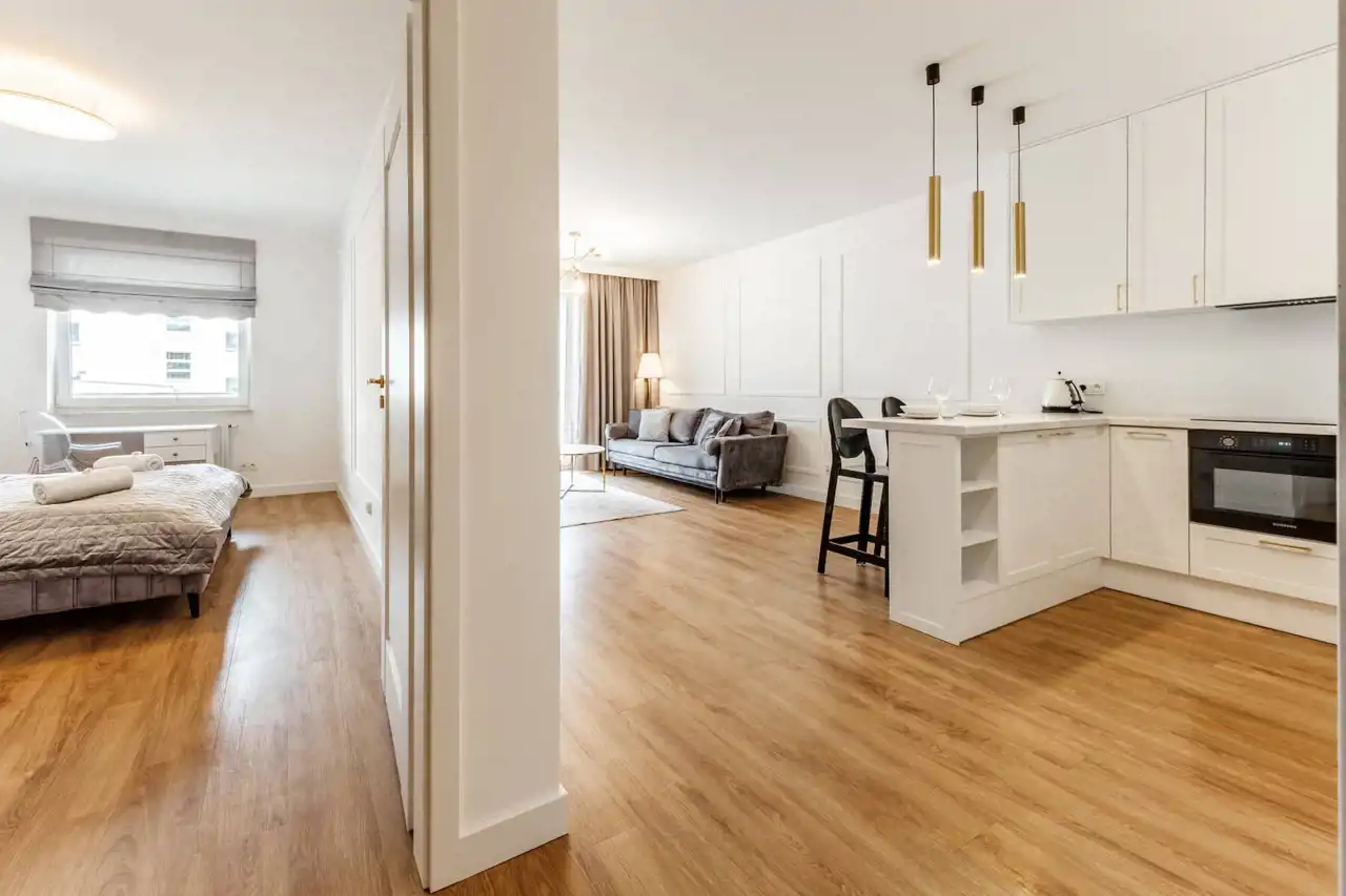 Mieszkanie w pełni urządzone i wyposażone z dbałością o najdrobniejszy szczegół. Do dyspozycji pozostają: wysokiej jakości sprzęt AGD i RTV w pełni wyposażona kuchnia, darowe WiFi i bogaty pakiet TV. Do apartamentu również przynależy piękny taras widokiem na wewnętrzny dziedziniec.