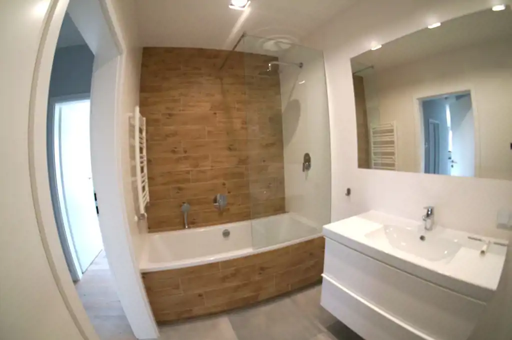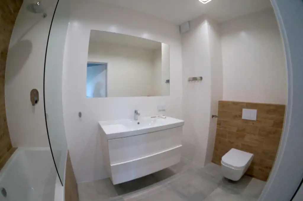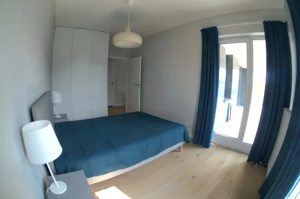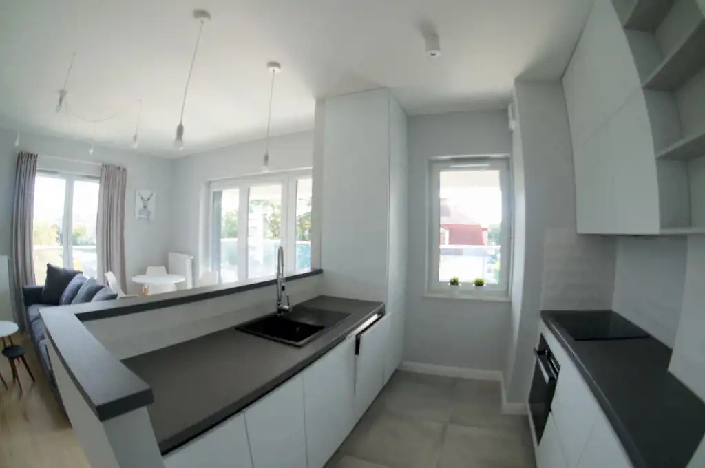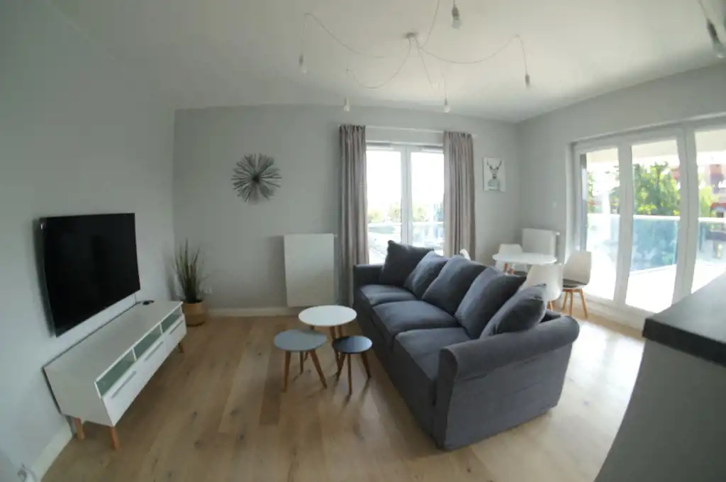 Na powierzchni 75 mkw, znajduje się nowoczesny aneksu kuchenny otwarty na salon (z wyjściem na balkon), dwóch sypialni, łazienki z wc ,toalety oraz pralni. Mieszkanie jest w pełni umeblowane i wyposażone w sprzęt AGD i RTV. Jest bardzo jasne i klimatyczne.