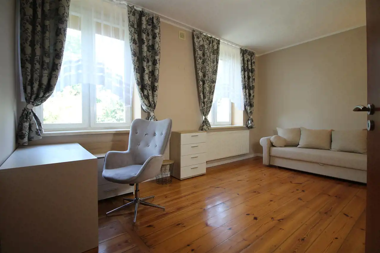 Ta oferta stanowi z wielu powodów niepowtarzalną okazję szczególnie dla osób poszukujących nie tylko wygodnego lokum, ale też wytchnienia od miejskiego zgiełku, doceniających bliskość natury, zalety dużego ogrodu, ciszę i spokój otoczenia.