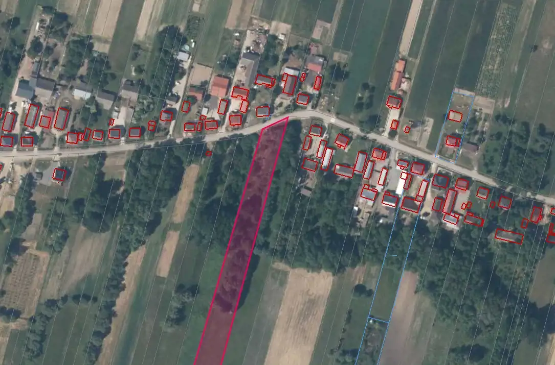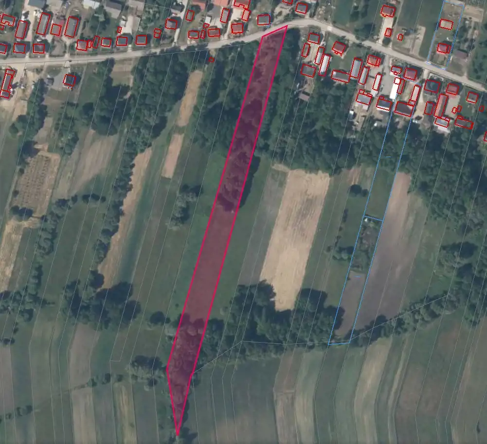 - Działka położona w ciągu zabudowań mieszkalnych.