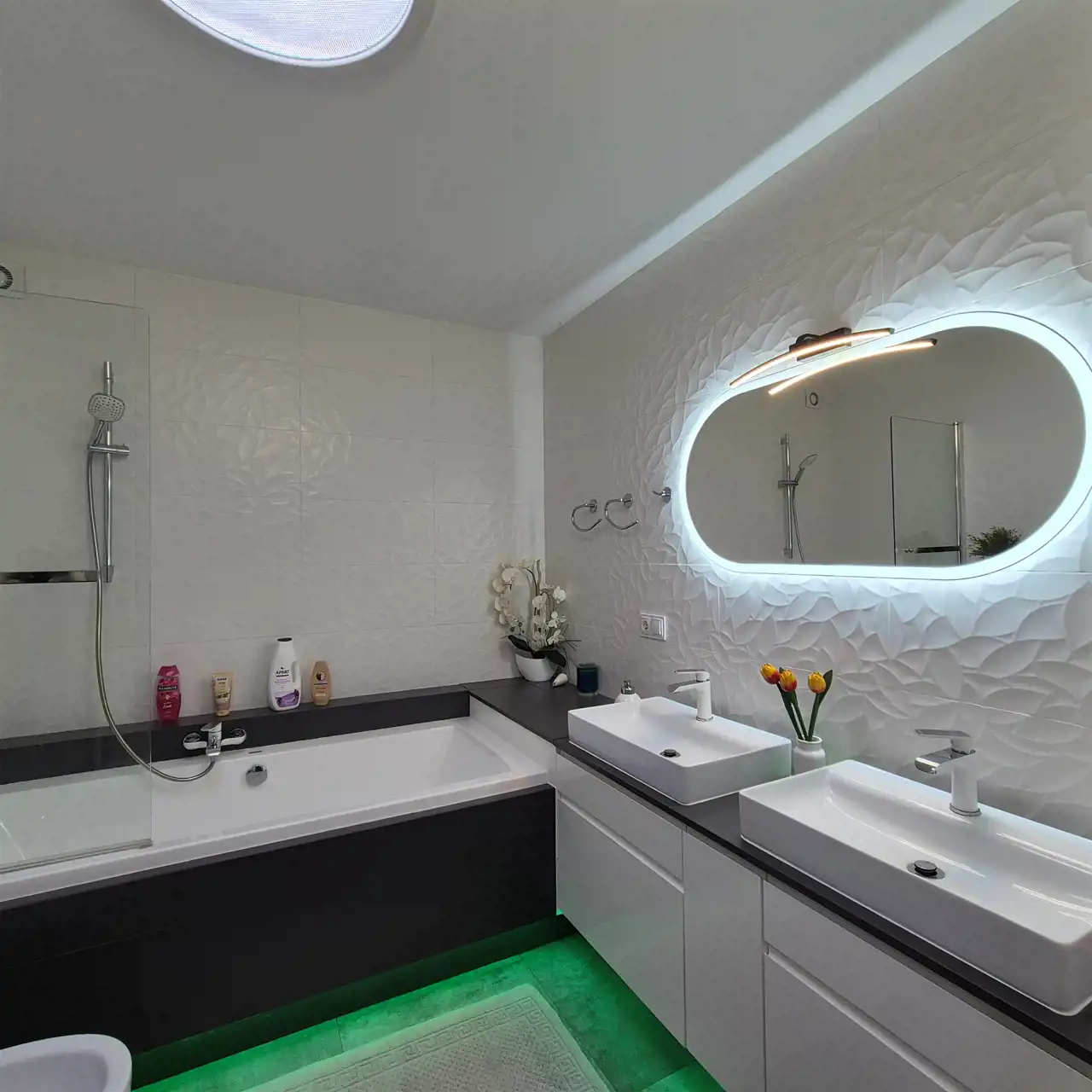 • Podłogi: płytki ceramiczne w strefach użytkowych