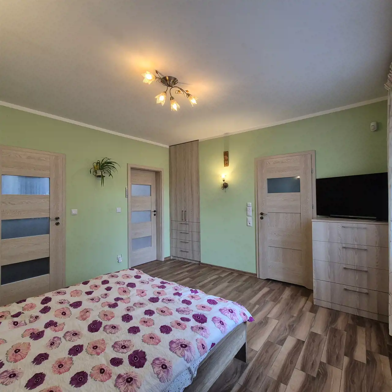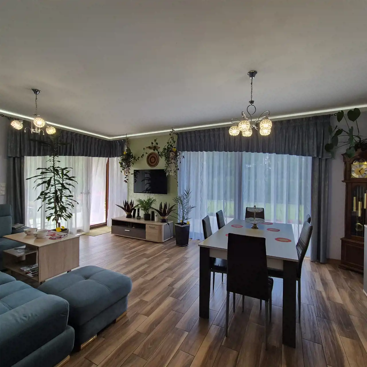 Idealny dla rodziny szukającej nowoczesnego, ekonomicznego i bezpiecznego domu parterowego z wygodnym układem, dużym tarasem i ogrodem. Liczne rozwiązania smart oraz fotowoltaika zapewniają komfort i niskie koszty utrzymania.