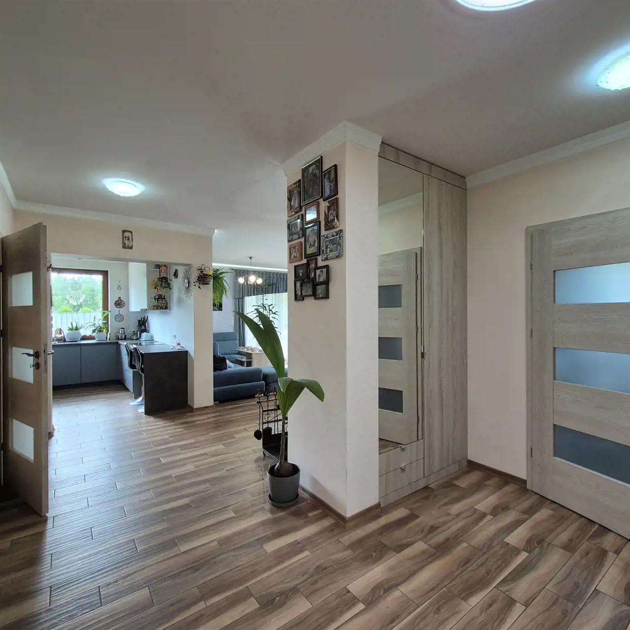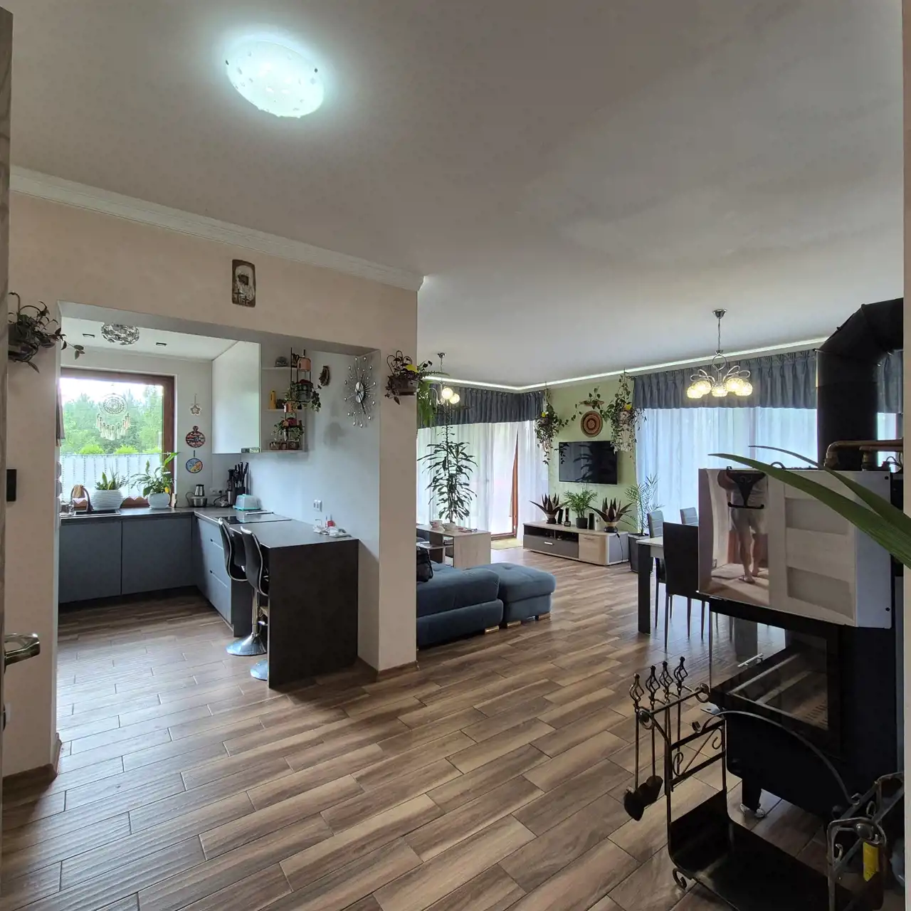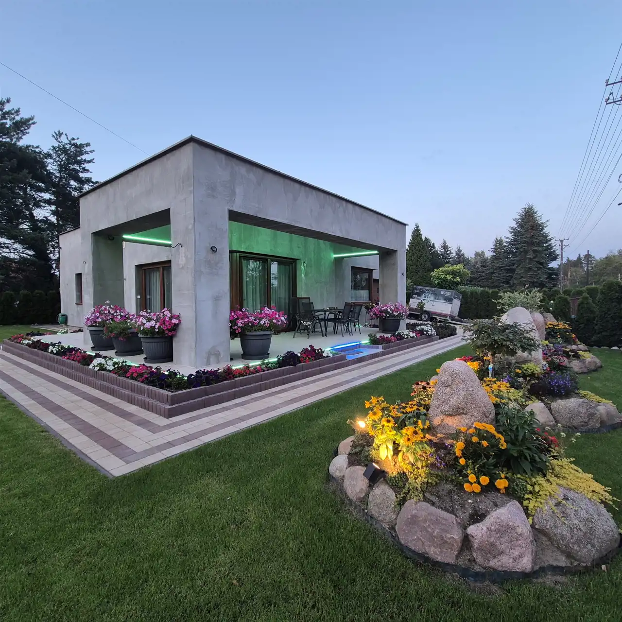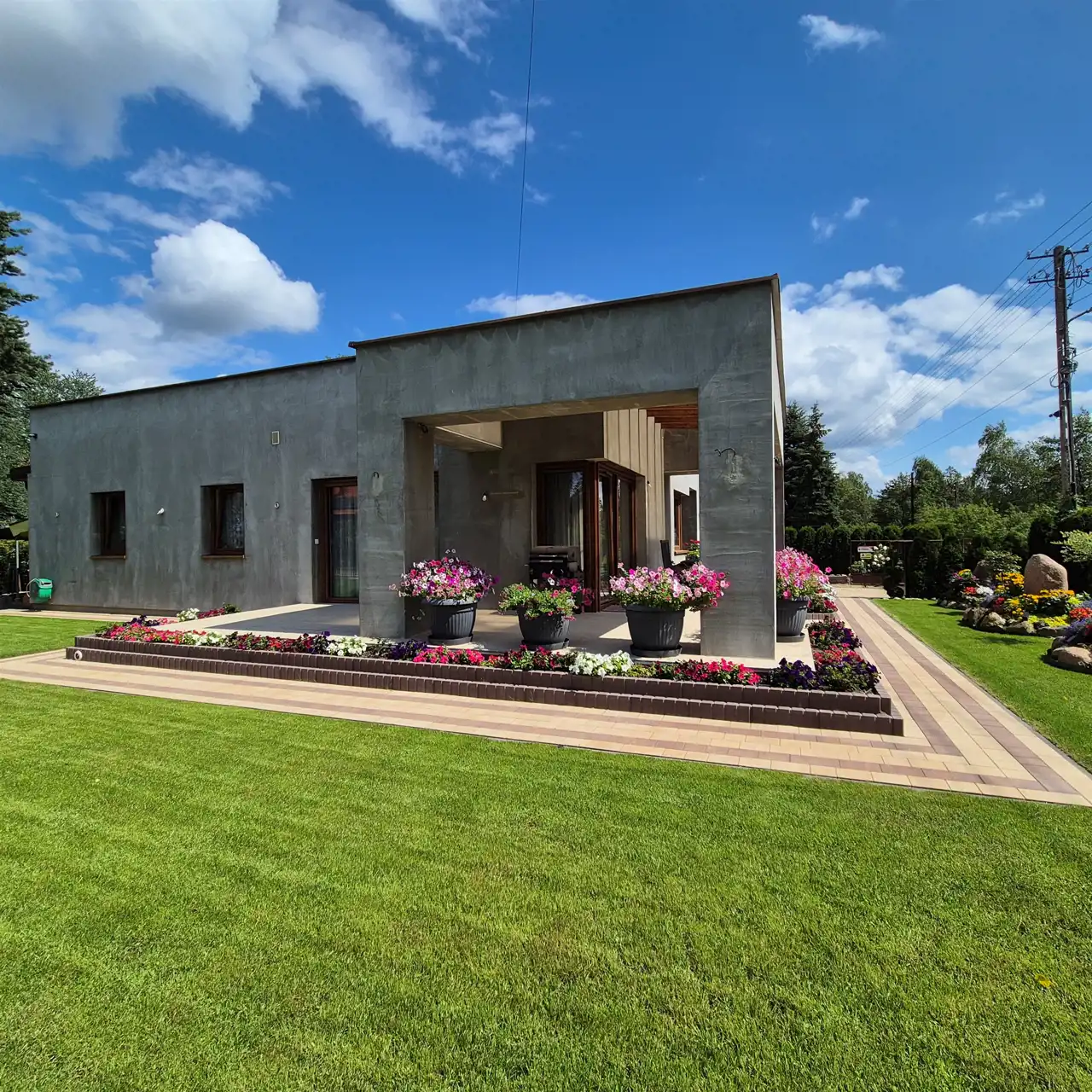 Prezentujemy Państwu przestronny, parterowy dom z 2020 roku o powierzchni użytkowej 168,9 m², wykończony w wysokim standardzie, położony na zadbanej działce 937 m² z dużym tarasem i pięknie zaprojektowanym ogrodem. Nieruchomość gotowa do wprowadzenia, z bogatym pakietem nowoczesnych instalacji i udogodnień (smart home, fotowoltaika, automatyczne nawadnianie). Elewacja domu w trakcie realizacji.