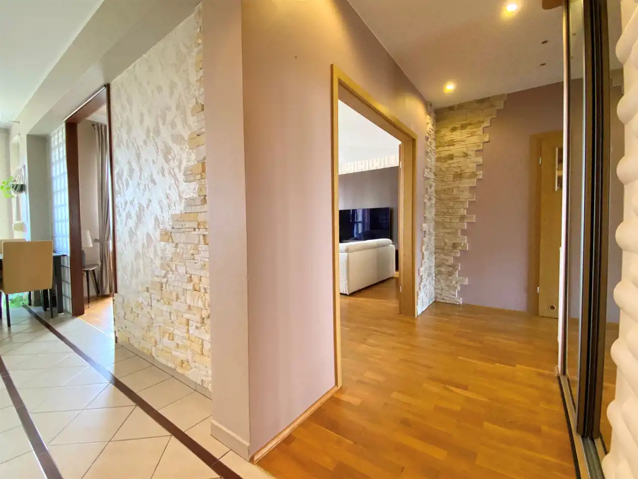 W pokojach na podłogach parkiet drewniany. W łazienkach i w kuchni - płytki.