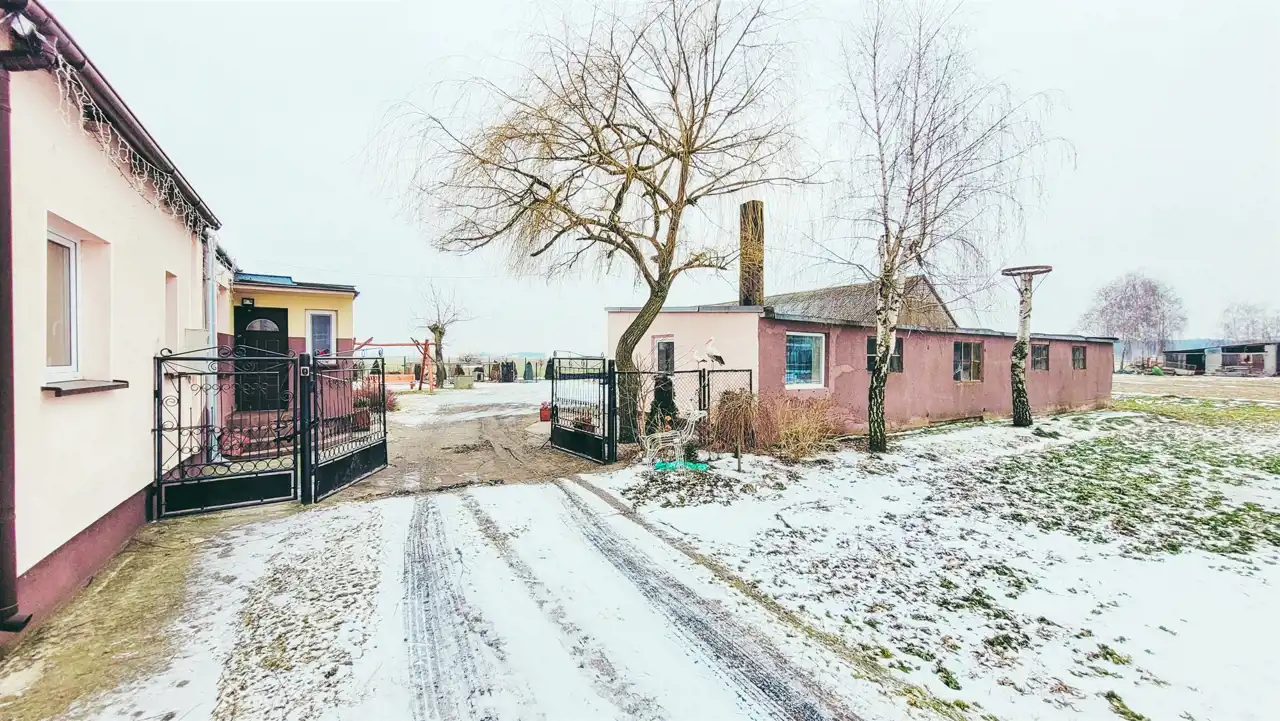 Duże budynki gospodarcze z potencjałem pod działalność; spore podwórko. Ogródek przed domem, duża działka z miejscem do wypoczynku na świeżym powietrzu, idealny dla osób chcących odpocząć od zgiełku miasta lub pod uprawę roślin. Teren ogrodzony z wygodną bramą wjazdową z dużym garażem na 2-3 auta; budynki gospodarcze w dobrym stanie do adaptacji pod działalność. Możliwość zaadoptowania poddasza bud. mieszkalnego pod pokoje. Jeden z budynków gospodarczych można stosunkowo łatwo zaadoptować na mieszkalny. Gminna kanalizacja +dodatkowe własne szambo.