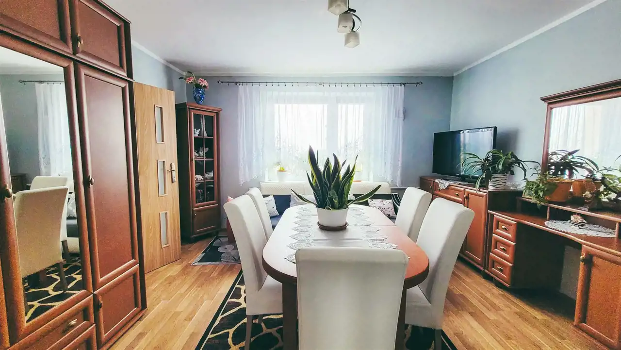 W nieruchomości zostały wymienione okna na PCV, łazienka po remoncie, kuchnia wyremontowana po 2015 roku. Budynek mieszkalny ma potencjał dla dużej rodziny, z możliwością rozbudowy powierzchni mieszkalnej o poddasze. Został ocieplony styropianem o gr.10cm. Rozkład pomieszczeń pozwala na podział na 2 odrębne lokale mieszkalne, każdy z osobną łazienką i kuchnią.
