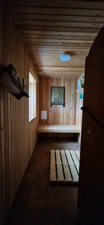 Parter: duży przestronny salon, jadalnia, duża kuchnia, łazienka z wc, sauna z prysznicem.