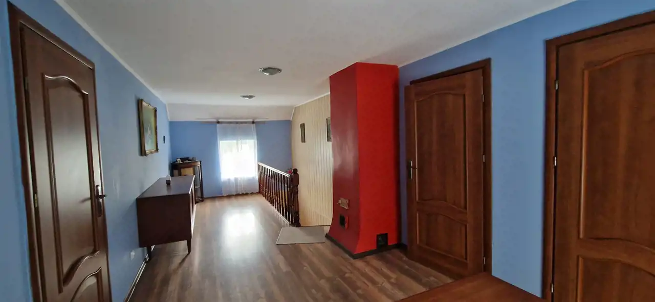 I piętro: 3 pokoje ( dwa pokoje z łazienką i wc ),garderoba, hol.