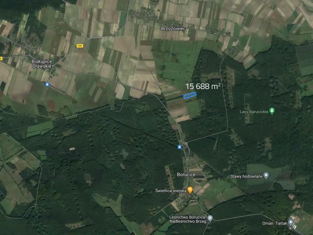 Przedmiotowa działka położona we wsi Borucice w gminie Lubsza, otoczona lasami w Stobrawskim Parku Krajobrazowym.