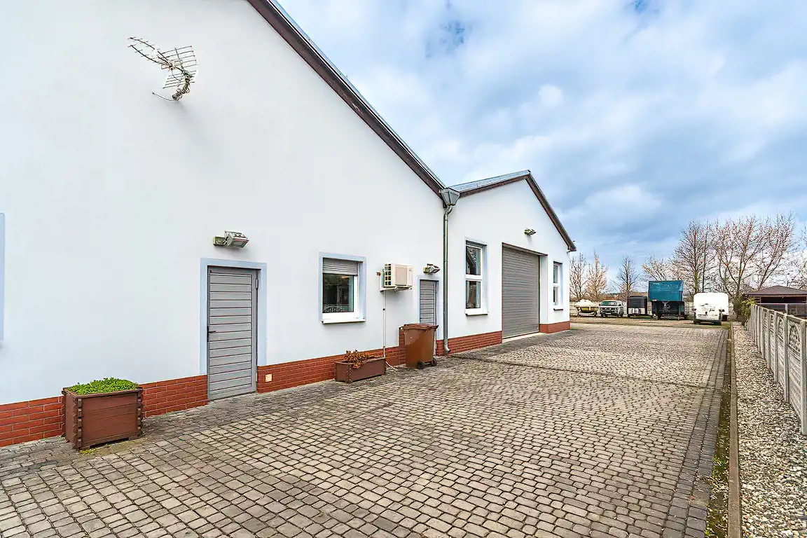 podzielony jest na halę o pow. 278 m2 i część biurowo - socjalną 56m2.