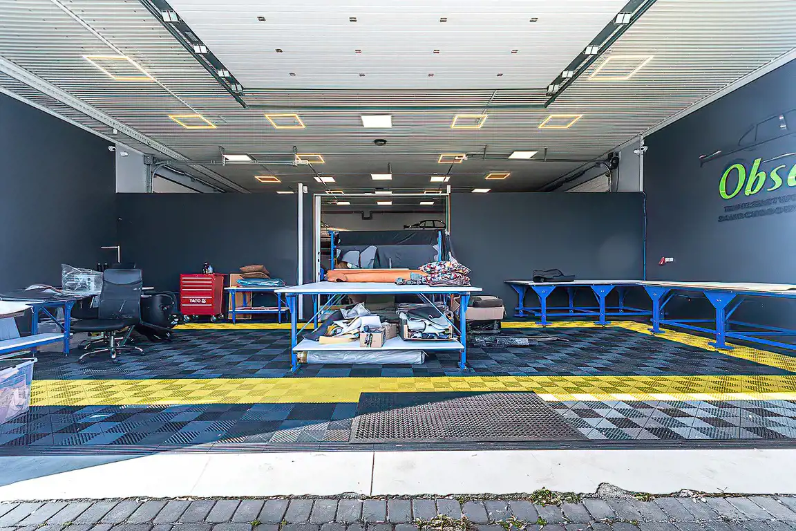 Stacja diagnostyczna wraz z wydzielonym miejscem do napraw aut, mała produkcja, hale +