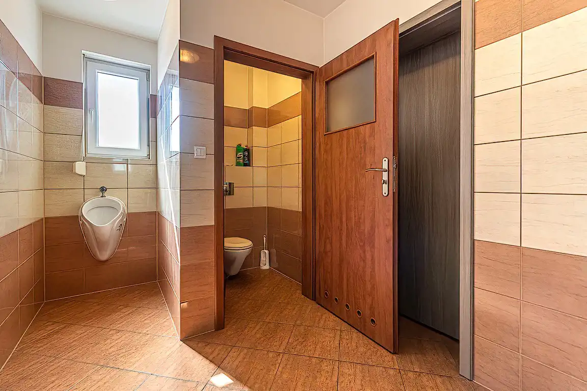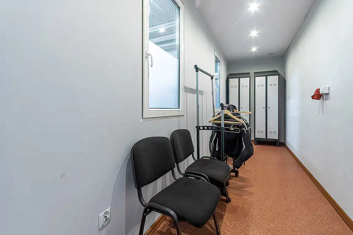 W części biurowej do dyspozycji są dwie łazienki, jedna dla personelu z prysznicem i
