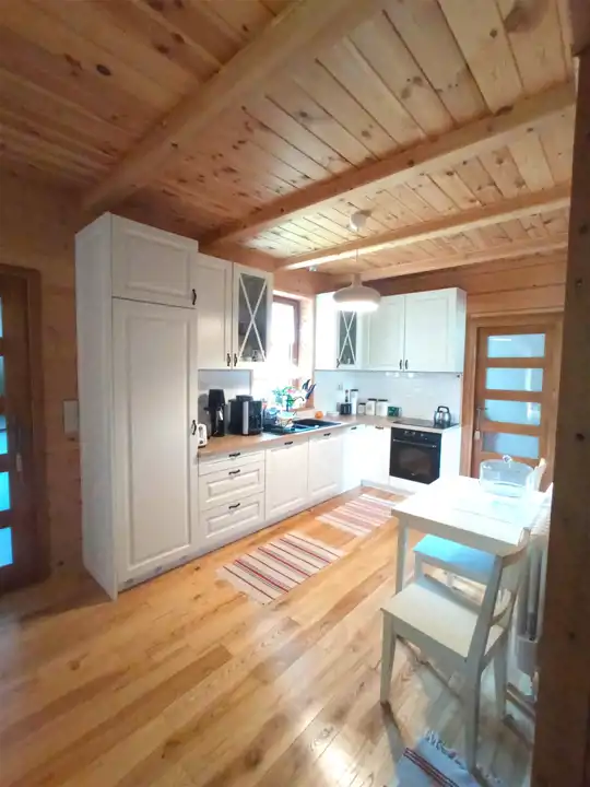 Do sprzedaży dom wolnostojący o powierzchni całkowitej około 160 m2 oraz powierzchni użytkowej około 120 m2. Dom został wybudowany z drzewa modrzewiowego w 2020 roku. Ściany oraz dach jest ocieplony wełną mineralną o grubości około 25 cm. Dach pokryty blachodachówką. Okna PCV. Dom oraz woda ogrzewana za pomocą pieca elektrycznego. Dom wyposażony jest w kominek bez płaszcza wodnego.