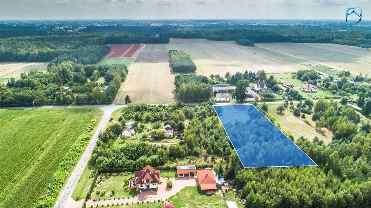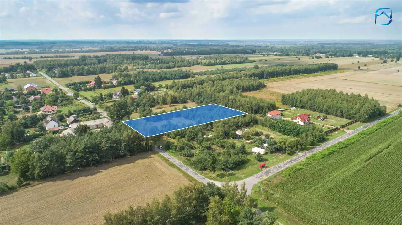 Prostokątna nieruchomość o powierzchni całkowitej 4297 m2, oraz szerokości 42 m to ustawny teren, położony pośród pól uprawnych i zabudowań jednorodzinnych.