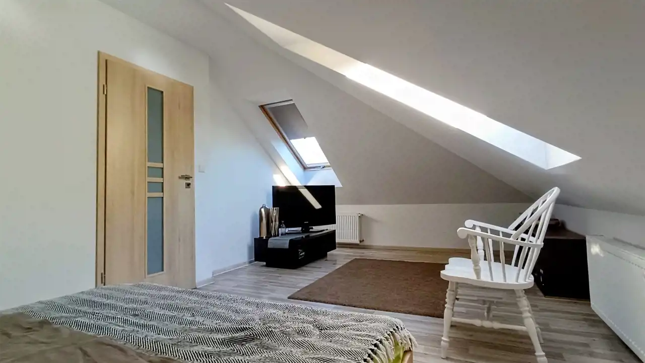 - 2 kondygnacje: parter 108,5 m2, poddasze o powierzchni 42,6 m2